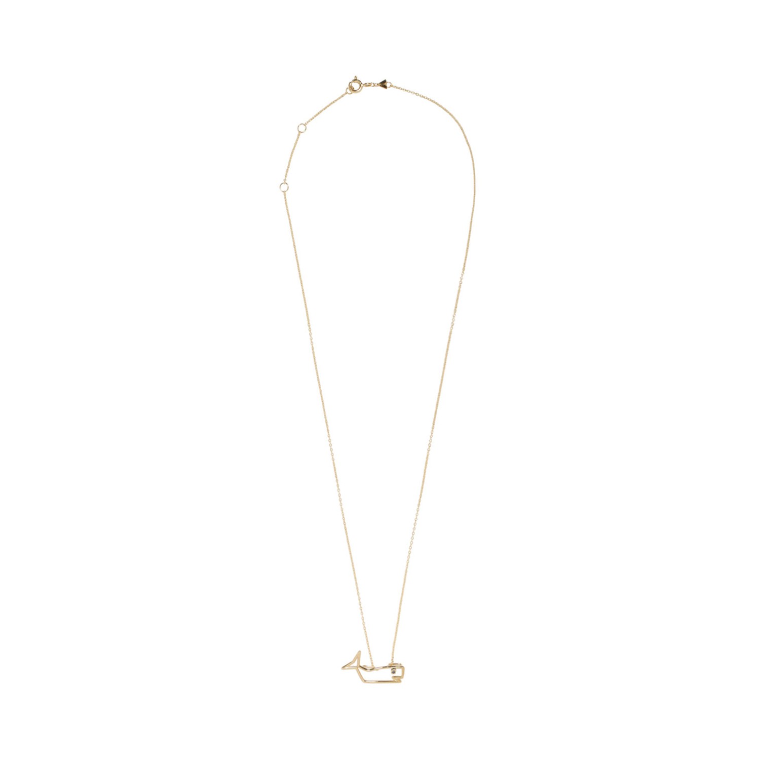 Aliita Yellow Gold Ballena Zafiro Azul Necklace. Yellow gold necklace, whale shaped pendant with blue sapphire on the eye, adjustable length, rolo chain necklace, ring clasp.