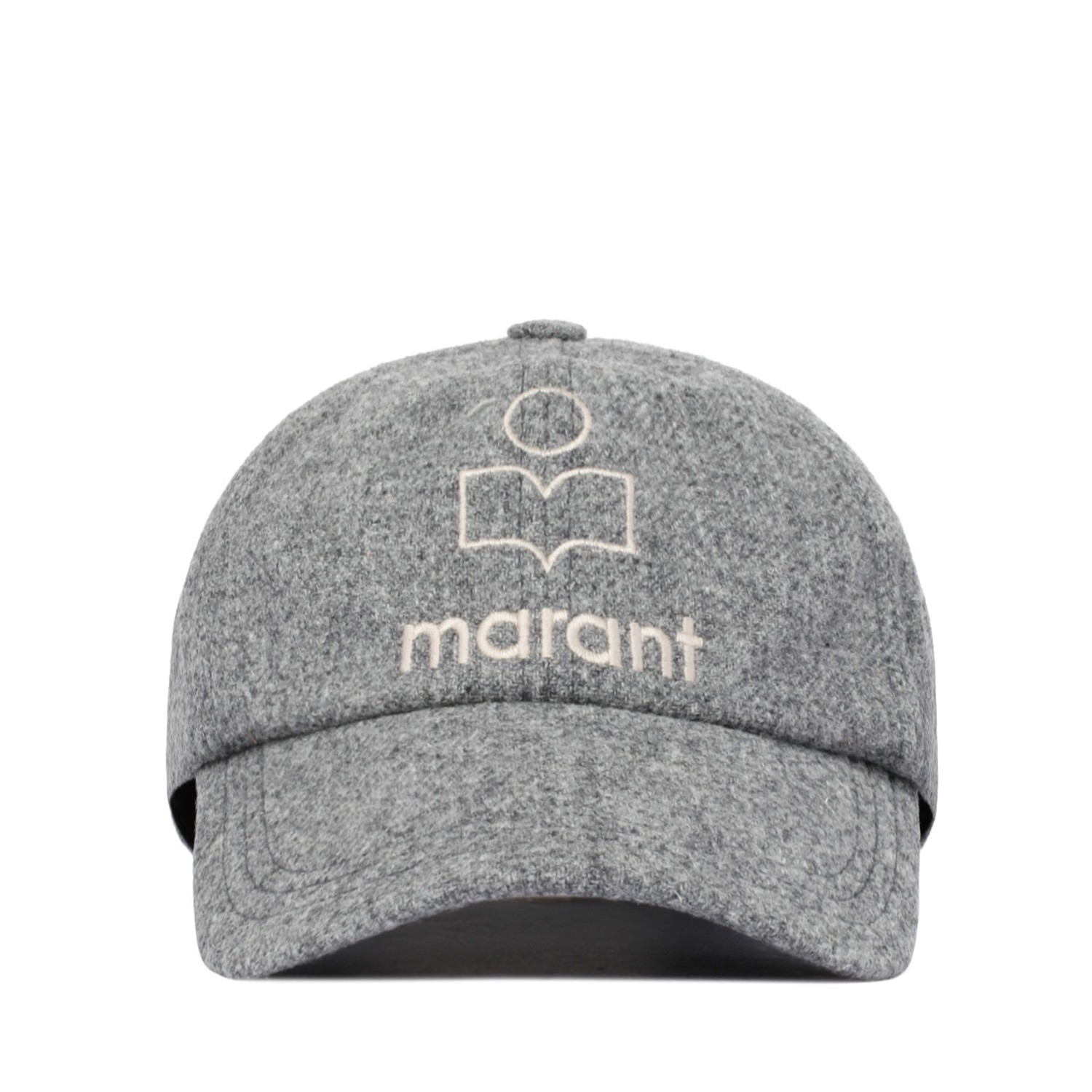 Isabel Marant Grey Tyron Cap. Grey cap, embroidered logo to the front, fabric covered button at the crown. Round crown, curved peak, rear touch strap fastening.