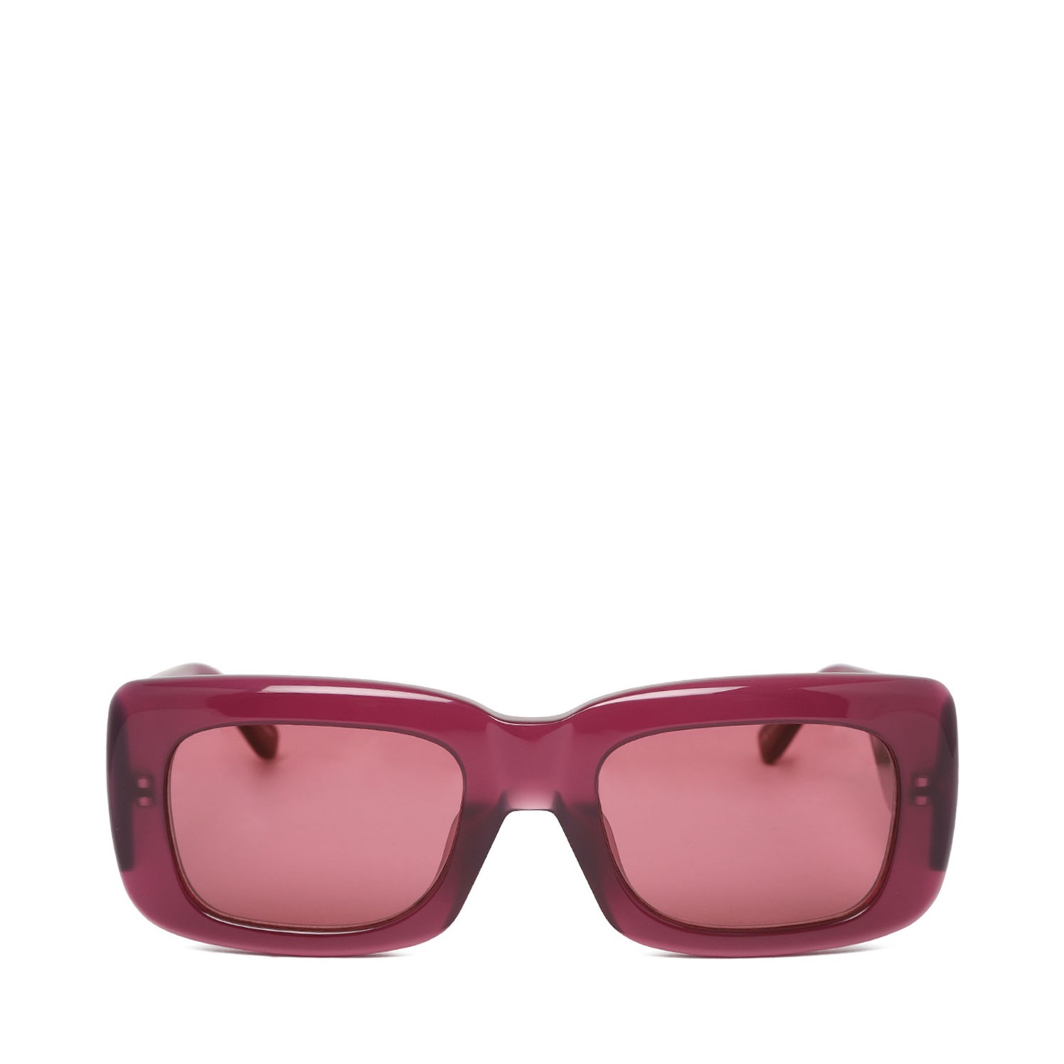 The Attico Dark Pink Sunglasses. Dark pink sunglasses with silver logo and pink lenses.
