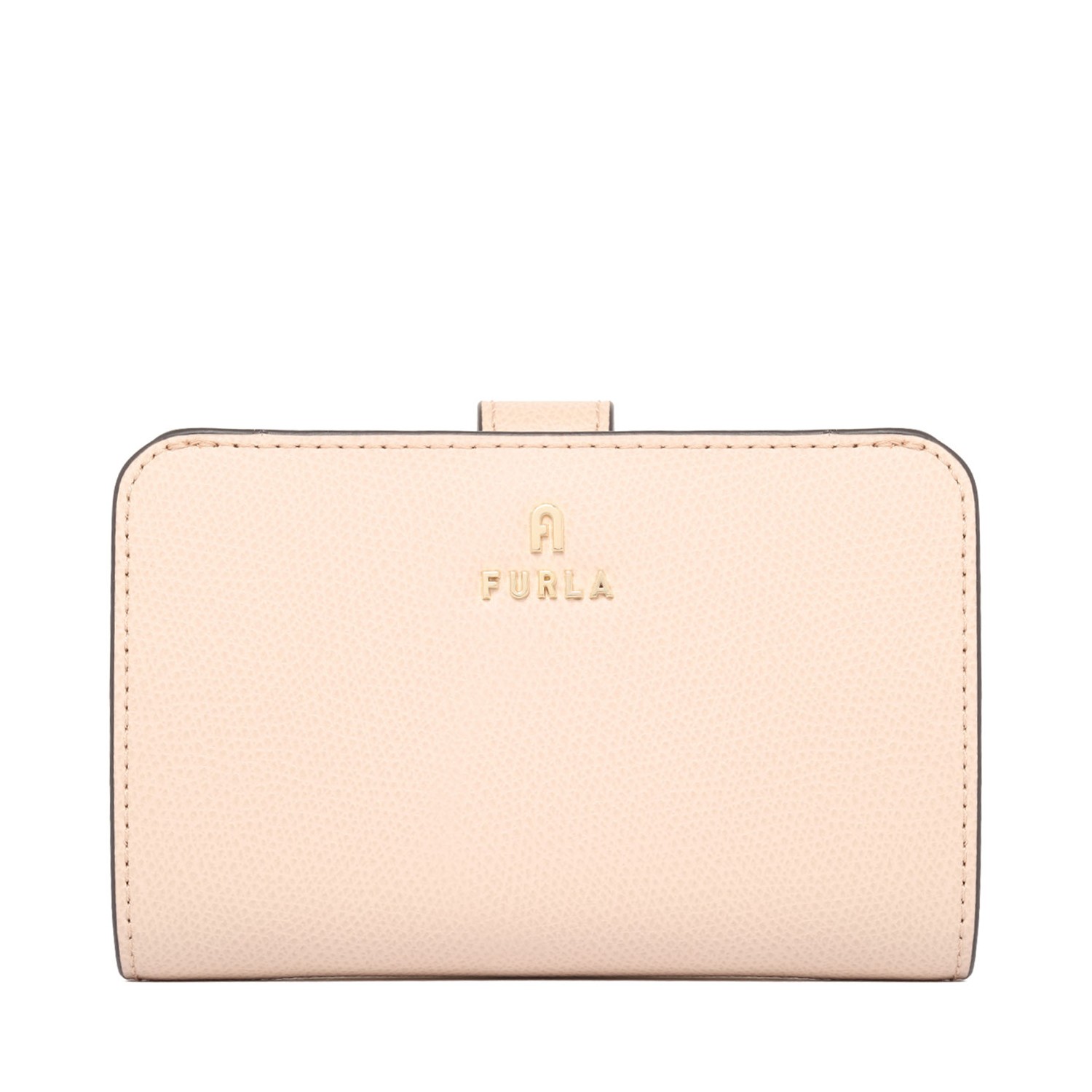 Furla Camelia Light Pink Wallet. Light Pink fine smooth leather wallet. Ten internal credit card slots, internal banknote compartment, four internal side pockets, internal coin pocket with zip closure, flap closure with press stud. Mini Furla and Arco logo punched on the front.