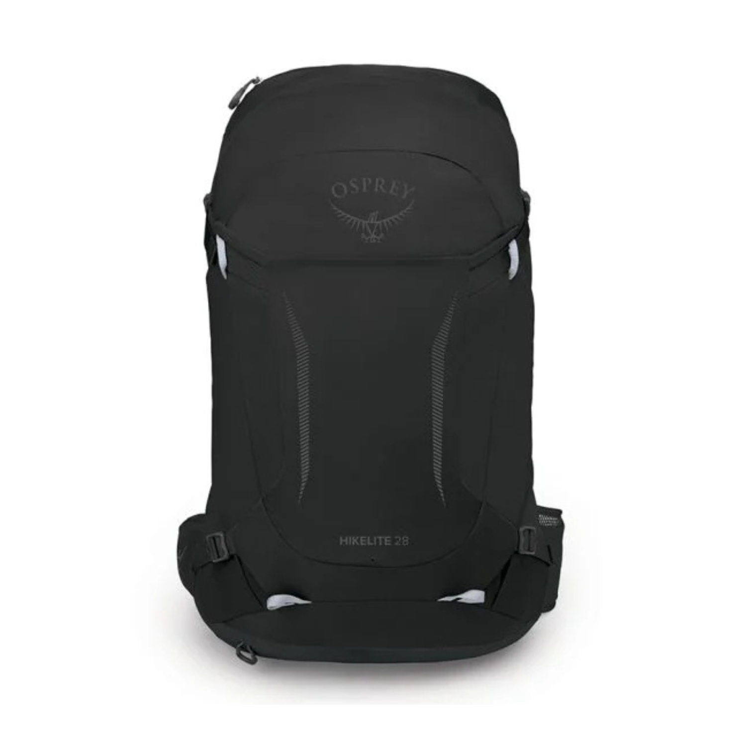 Osprey Black Hikelite 28 Backpack. Black lightweight, compact-profile 28-liter Hikelite Daypack combines essential features, extra cargo capacity, and the impeccable ventilation of AirSpeed