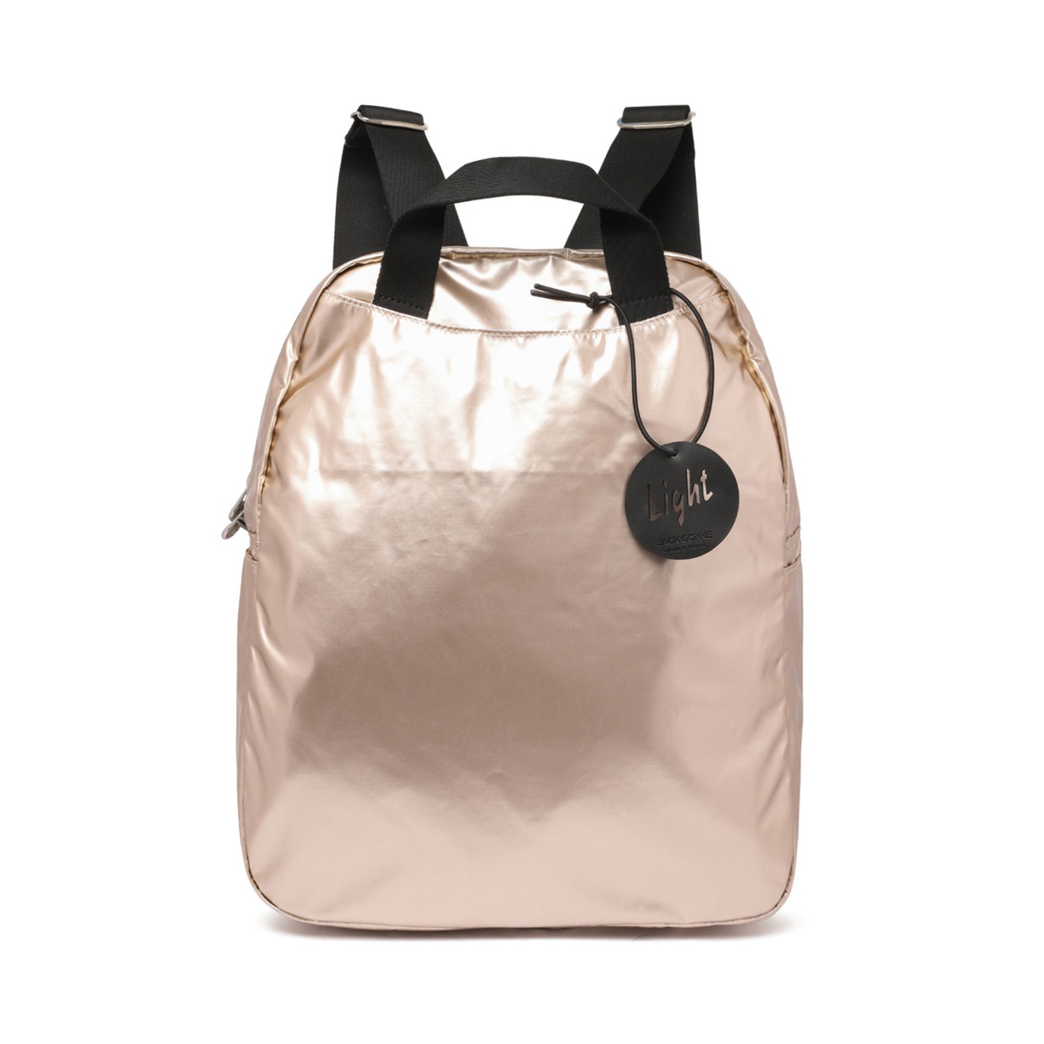 Jack Gomme Nacre Lami Light Backpack. Nacre backpack with handle for carrying by hand, adjustable straps, zip closure. 3 exterior pockets, 2 interior pockets, front pocket closed by a press stud, large removable zipped pocket.