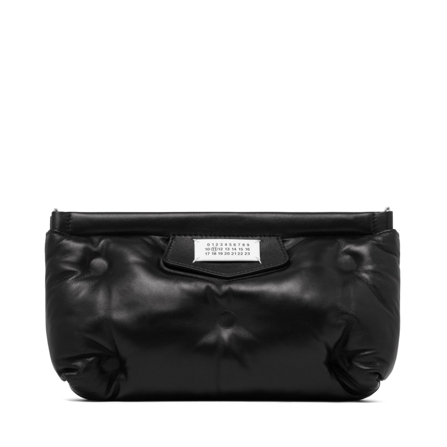 Maison Margiela Black Glam Slam Red Carpet Bag. Black leather crossbody bag, signature numbers motif, quilted. Concealed magnetic fastening, chain link shoulder strap, internal zip pocket and internal logo patch.