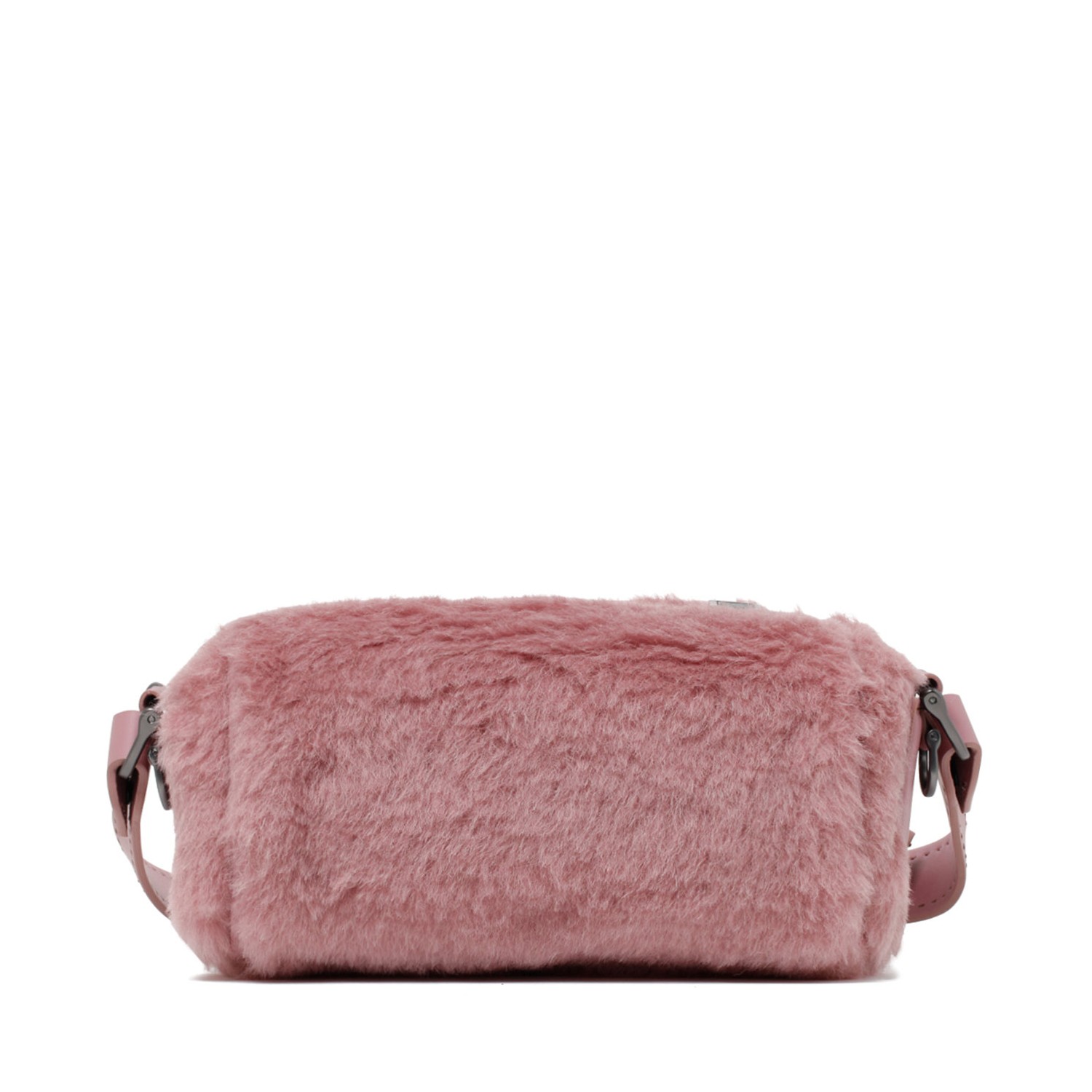 Max Mara Light Pink Teddy Small Bag. Light pink alpaca and wool shoulder bag, geometric design, light padded texture with characteristic cylindrical shape, adjustable shoulder strap in smooth leather, zip closure, monogram logo slider.