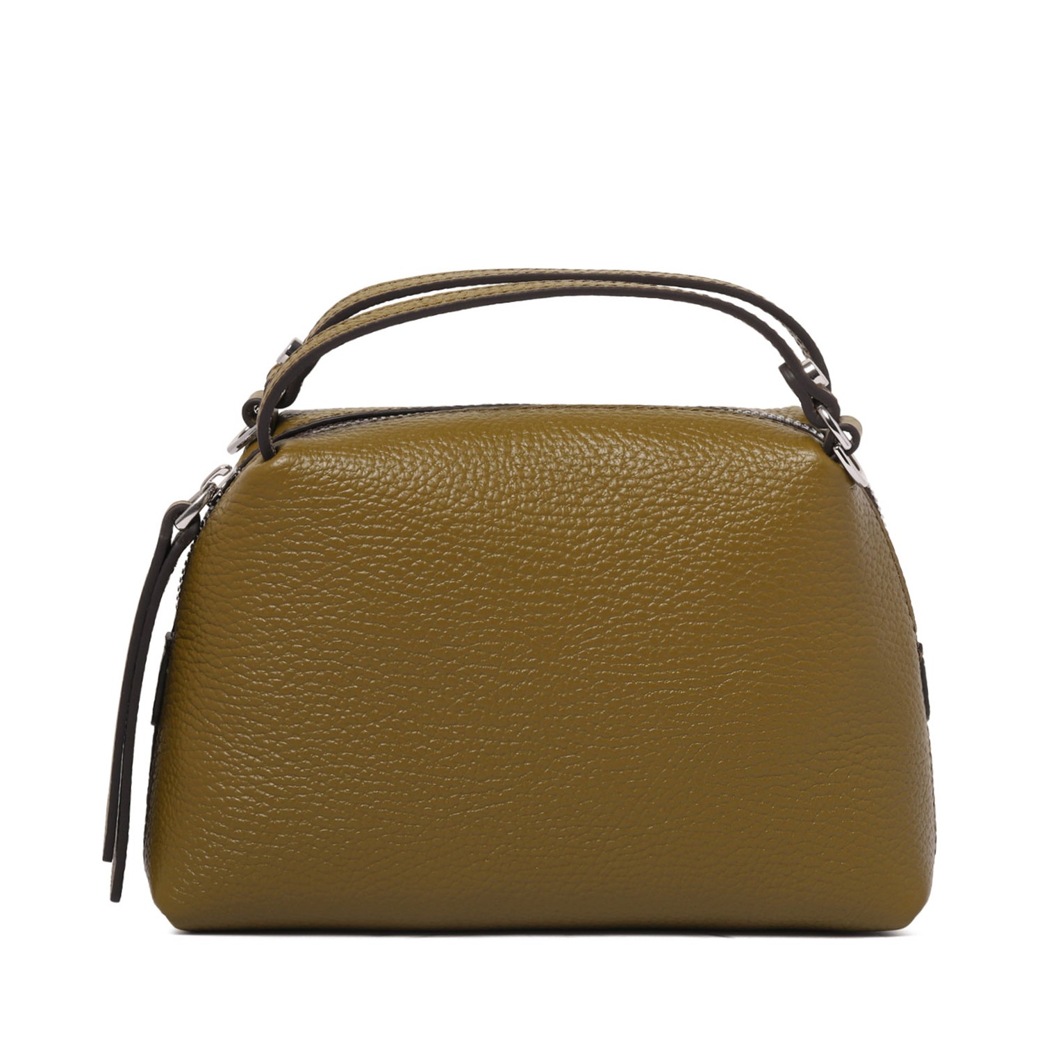 Gianni Chiarini Olive Green Alifa Bag. Olive green hammered leather double handle bag, shoulder strap in tone. Equipped with a practical internal zip pocket.