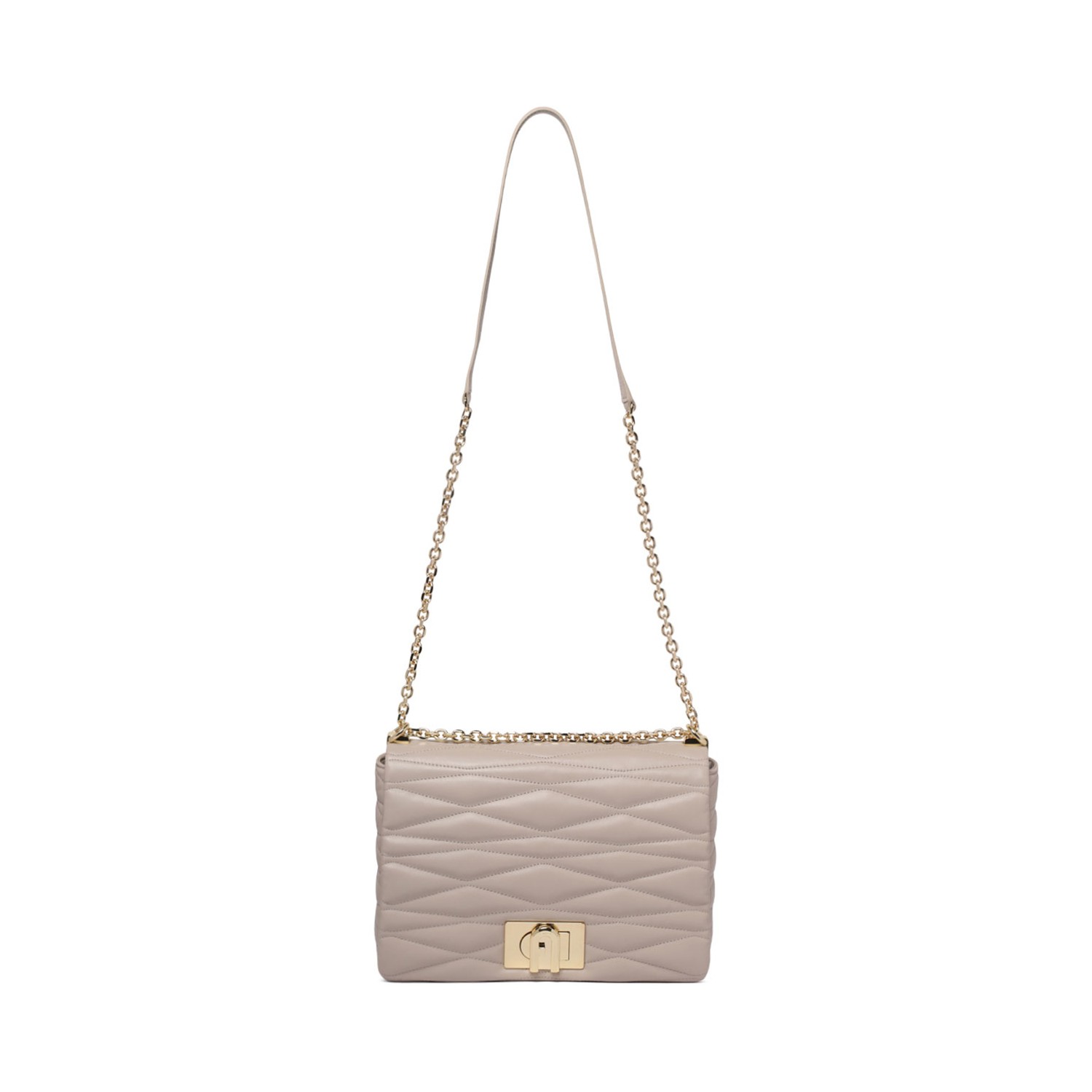 Furla Vanilla Medium Shoulder Bag. Vanilla quilted shoulder bag with chain-link shoulder strap, foldover top, internal zip-fastening pocket, gold-tone logo plaque.