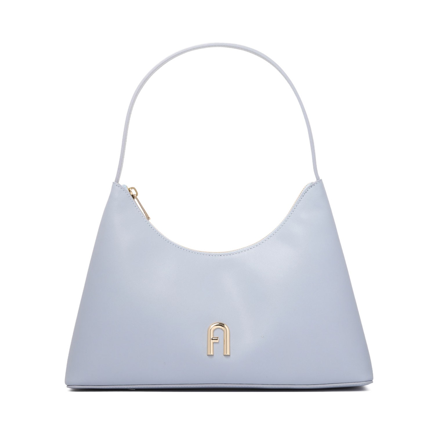 Furla Cloud Shoulder Bag. Cloud leather shoulder bag, smooth grain, gold tone logo plaque. Single flat top handle, top zip fastening, main compartment. Internal zip fastening pocket, internal logo patch.