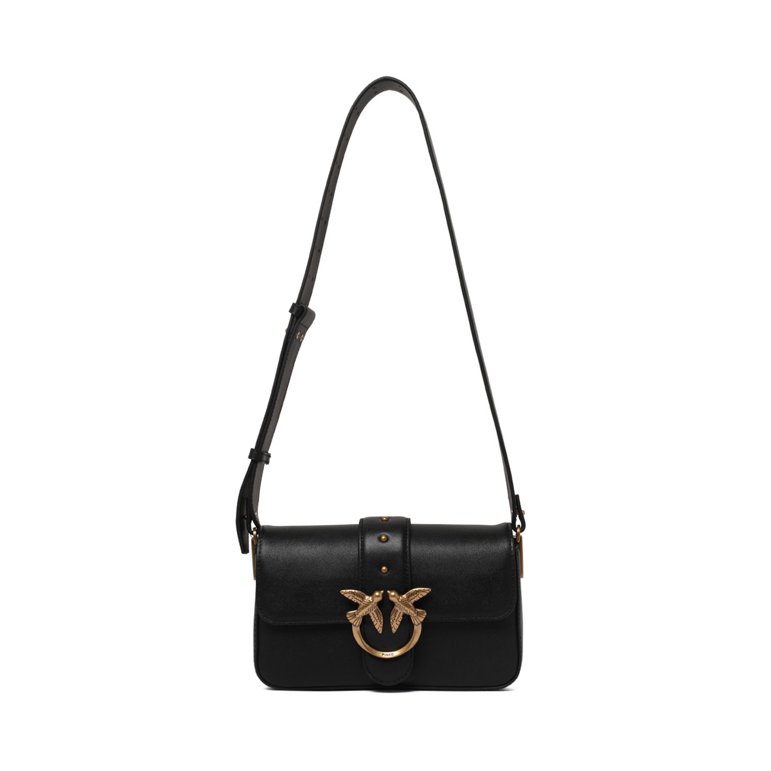 Pinko Black Mini Love One Slouchy Shoulder Bag. Black leather shoulder bag with foldover top with magnetic fastening. Adjustable detachable shoulder strap, main compartment, internal zip-fastening pocket.