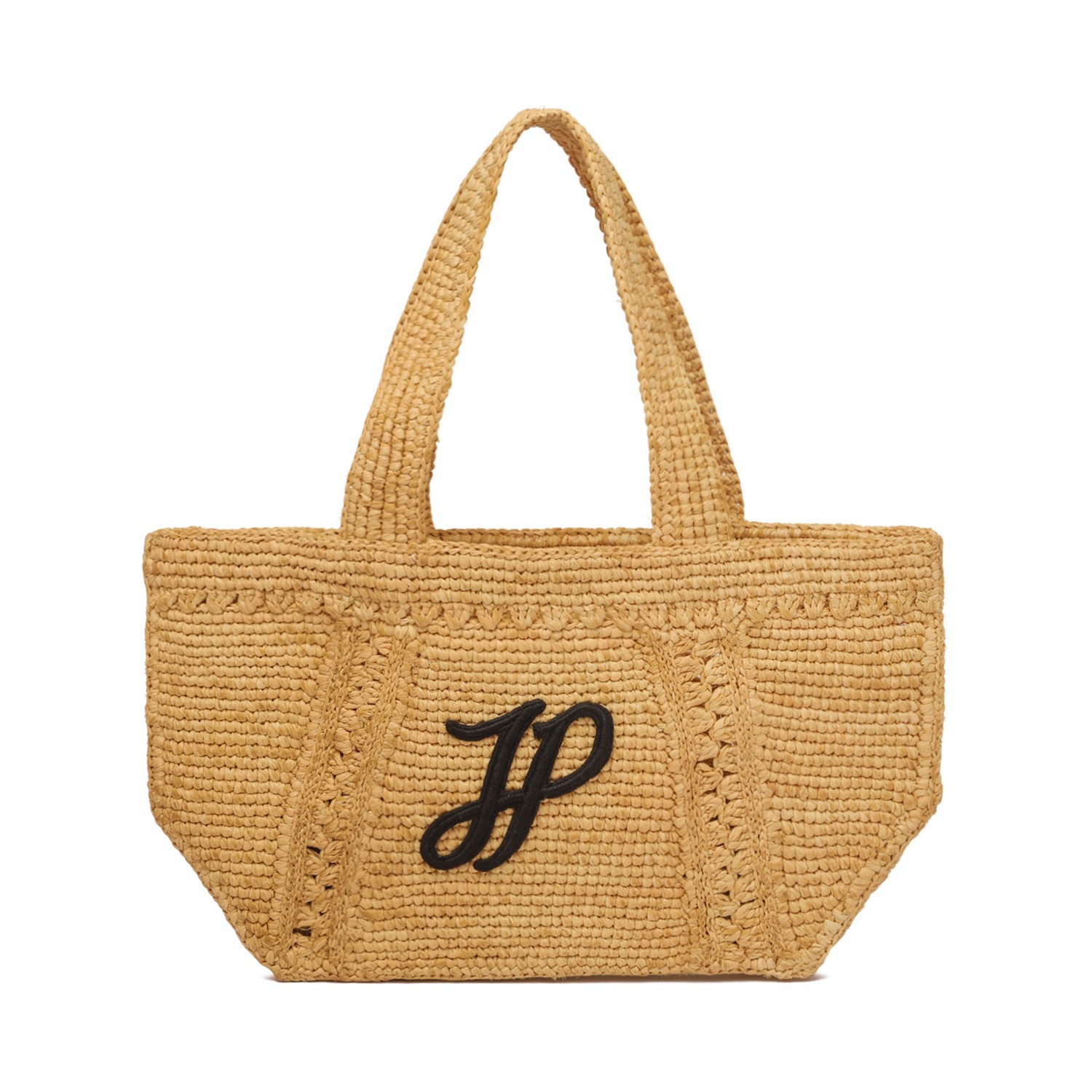 Patou Beige Small JP Tote Bag. Beige ramie tote bag with embroidered logo to the front, two top handles, open top.
