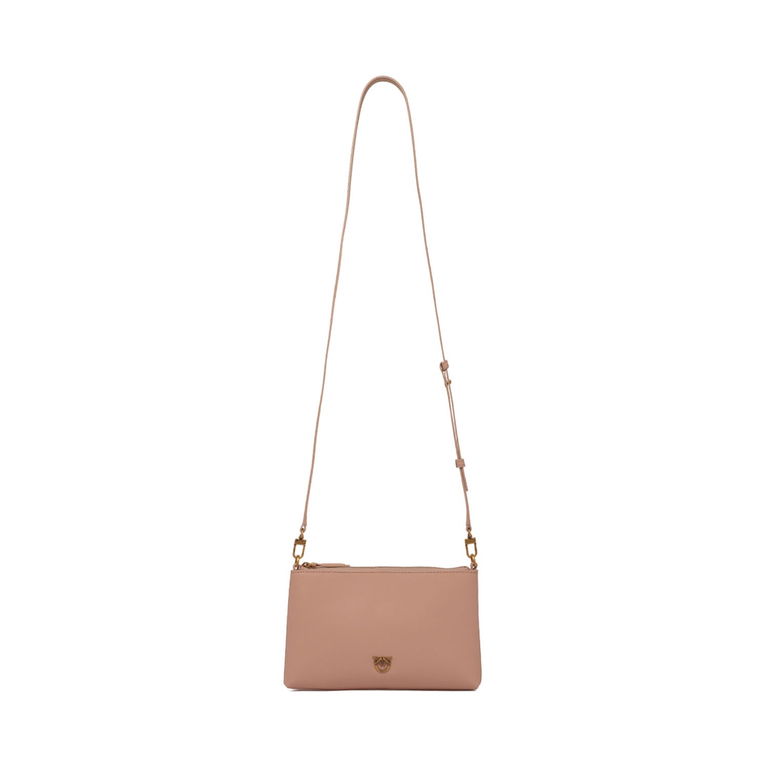 Pinko Mini Shoulder Bag. Mini bag with an elongated and flat rectangular shape made of soft silk-touch leather with Love Birds logo. The bag is complete with a removable and adjustable shoulder strap, and once removed it can be carried by hand.
