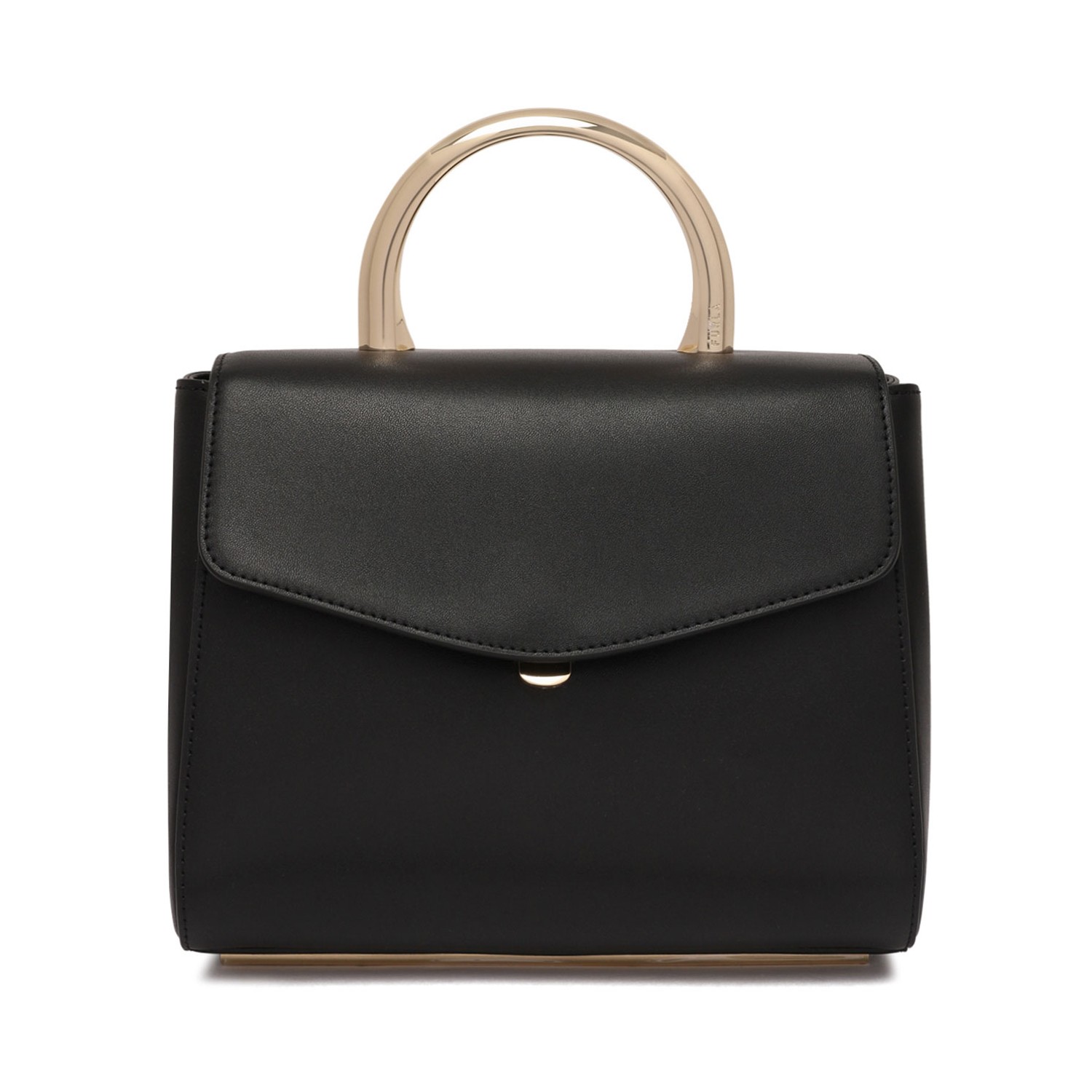 Furla Black Meridiana Mini Bag. Black calf leather mini bag with foldover top with magnetic fasteningm detachable shoulder strap and single circular top handle.