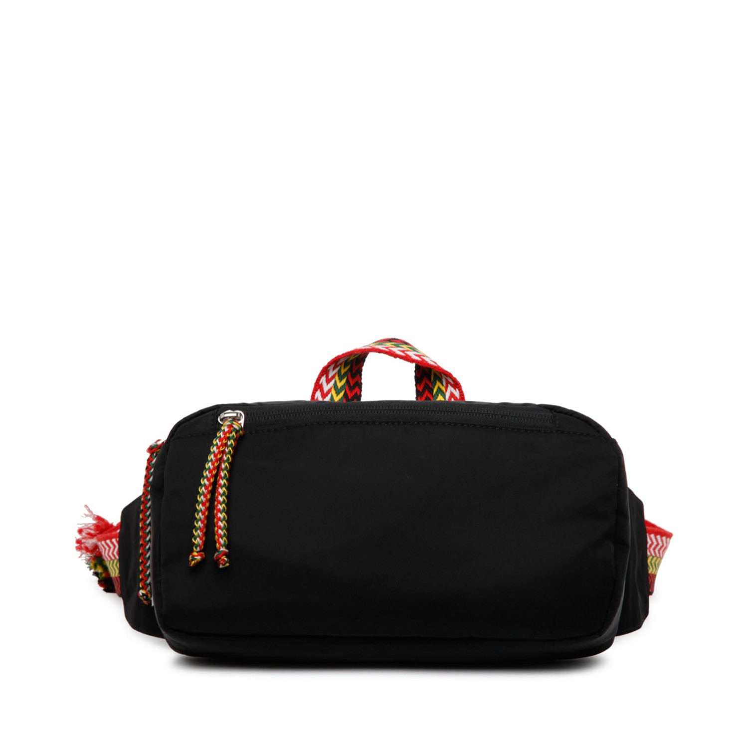 Lanvin Black Chevron Woven Pattern Messenger Bag. Black chevron woven pattern colours, single top handle, adjustable strap and top zip fastening. Front zip fastening pocket, internal patch pocket, internal logo patch, silver tone hardware.