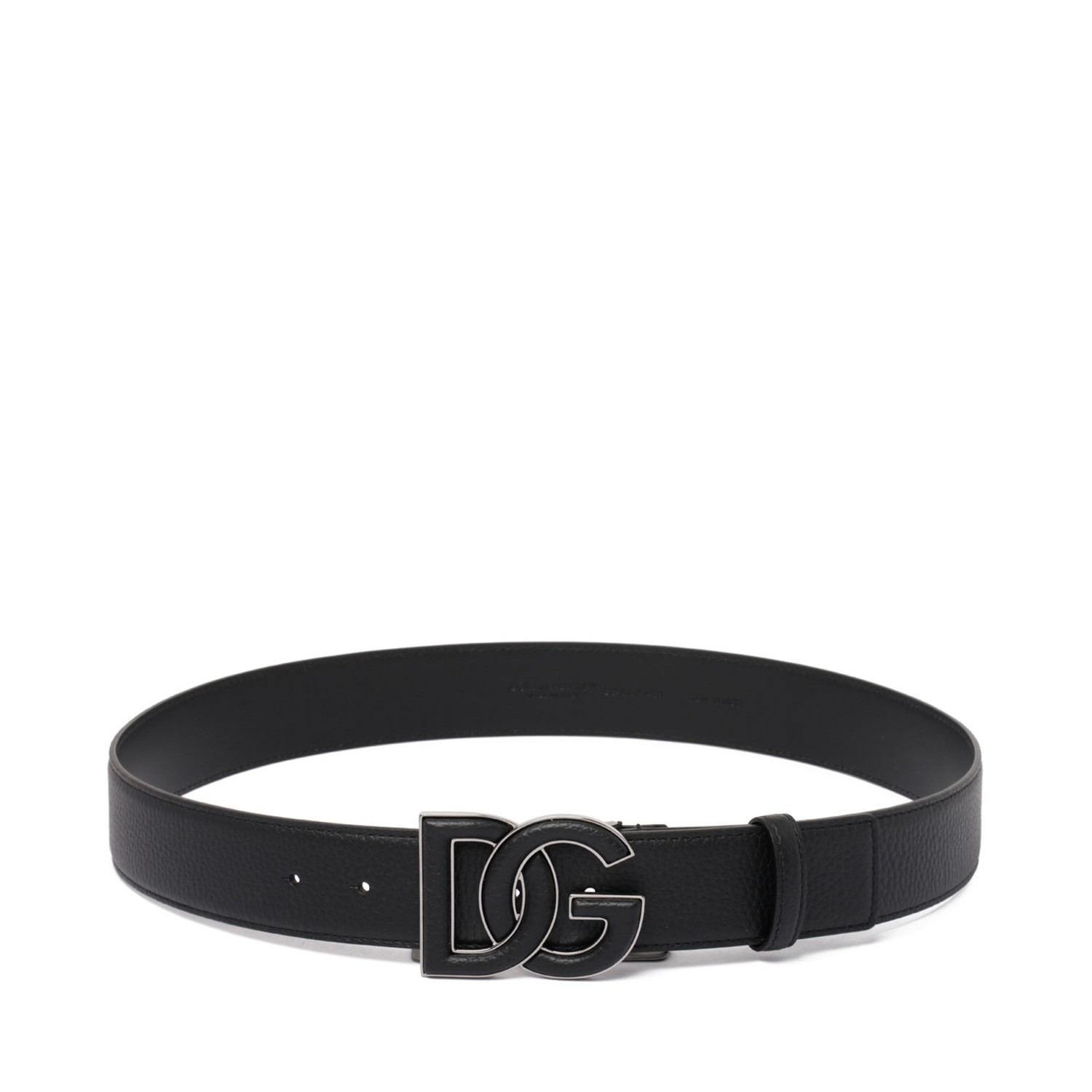 Dolce & Gabbana Black Deer Print Belt. Black deer print calfskin belt with DG logo, 40 mm shaft height. Mushroom closure under buckle and loop to secure the tip.