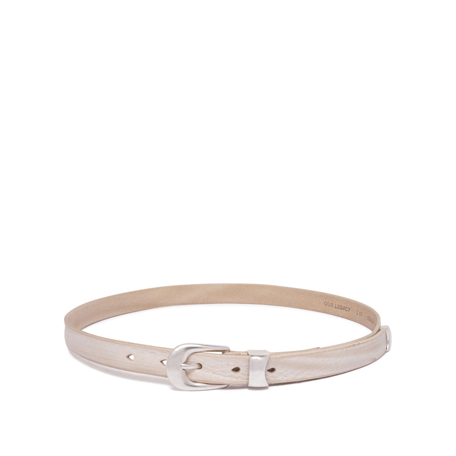 Our Legacy Beige Metal-Buckle Belt. Beige metal-buckle belt with pointed tip.