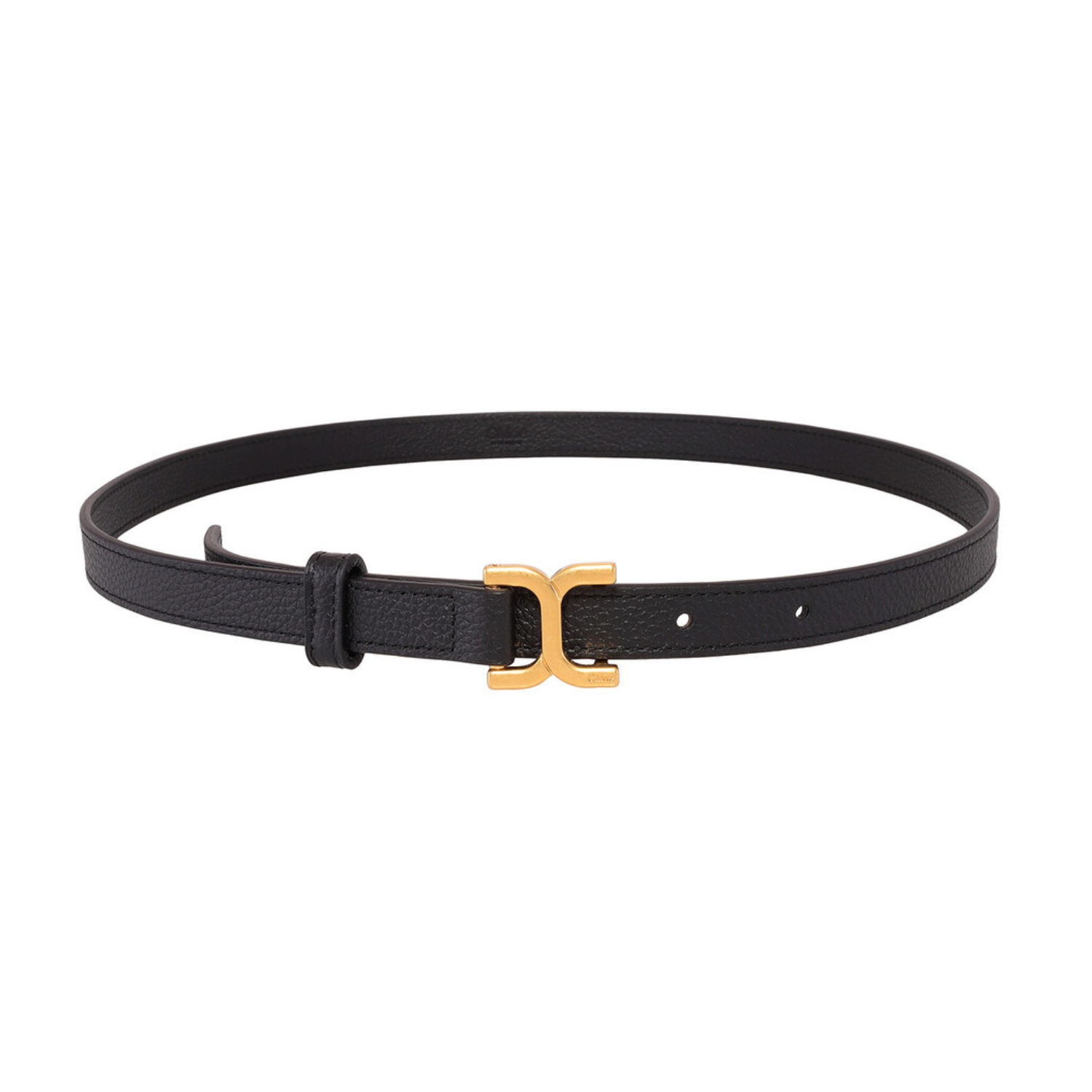 Chloe Black Small Marcie Belt. Black grained calfskin belt with iconic Marcie buckle with Chloe logo embossed on the leather and engraved on the buckle