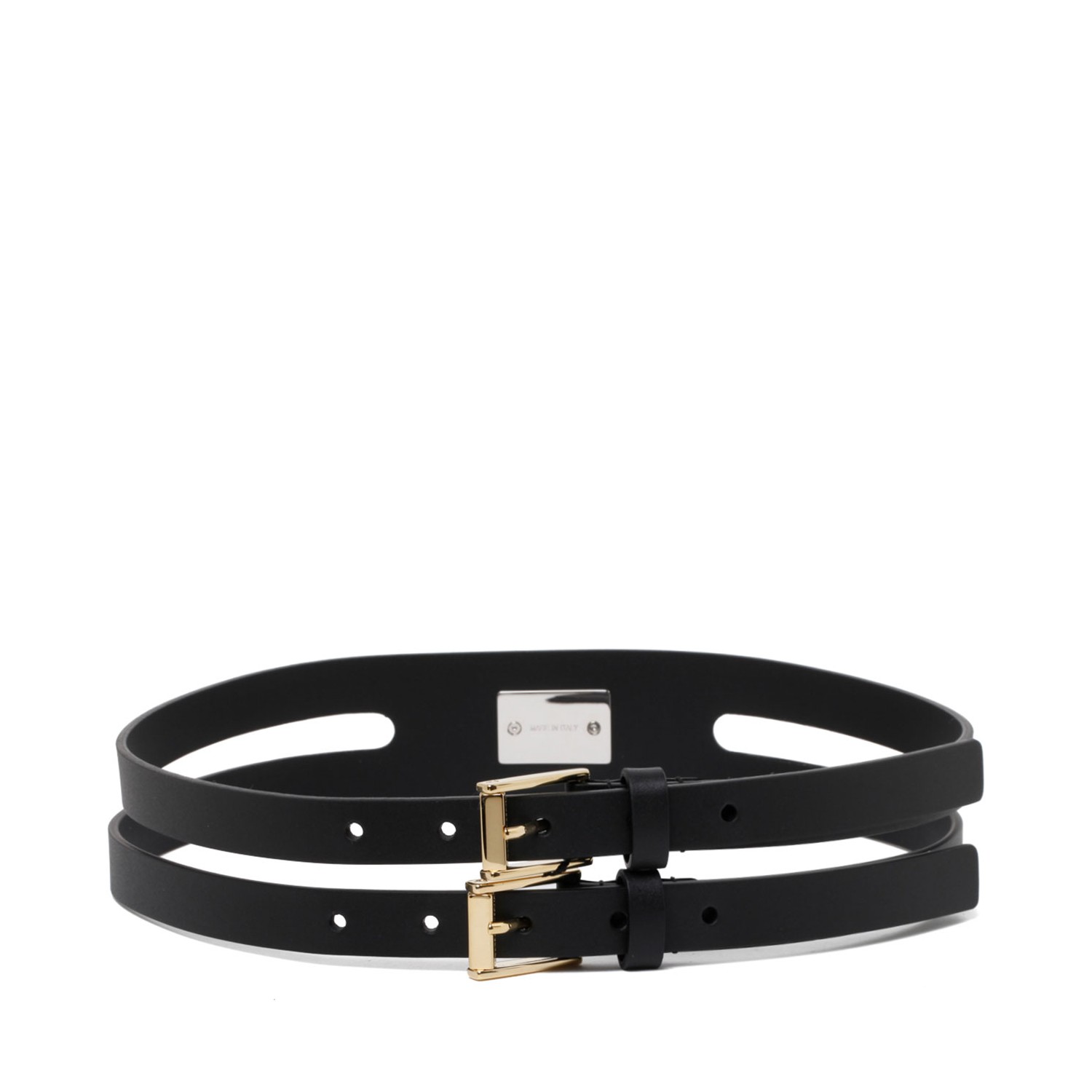 Black Calf Leather Logo Plaque Double Strap Belt