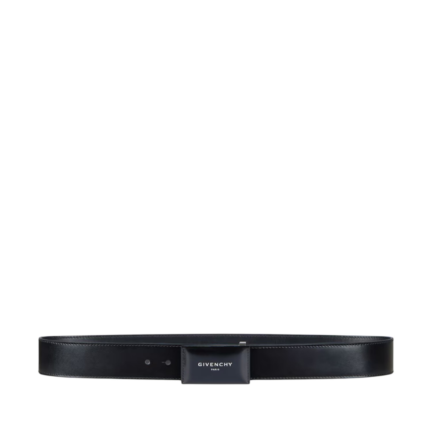 Givenchy Black Antigona Belt In Leather. Black belt in smooth calfskin leather, tone-on-tone leather buckle with Givenchy Paris signature.