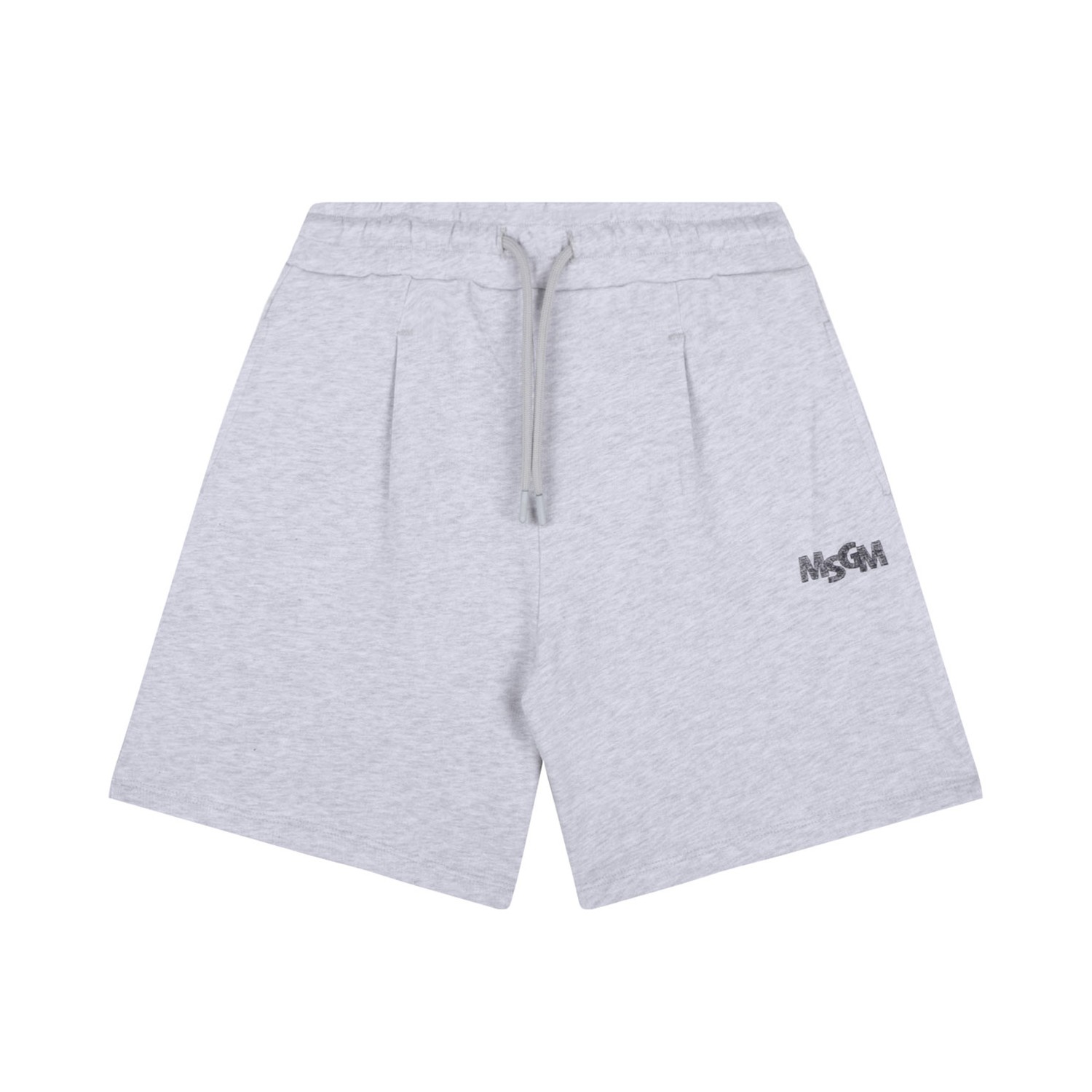 MSGM Kids Bermuda Shorts. Light grey cotton bermuda shorts with elasticated drawstring waistband, two side inset pockets, logo print to the front, melange effect.