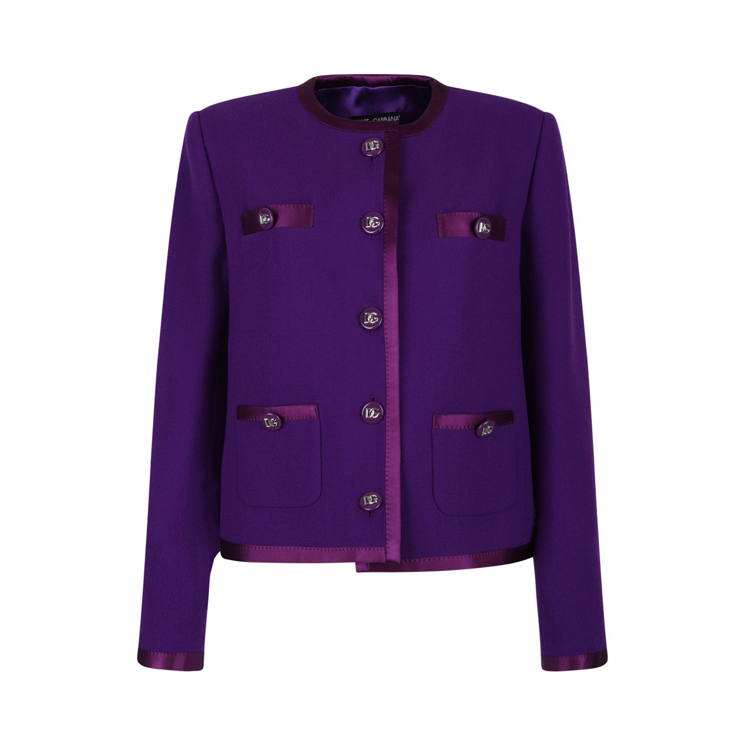 Dolce & Gabbana Purple Blazer. Purple blazer, front button fastening, four front patch pockets, buttoned cuffs, shoulder pads.