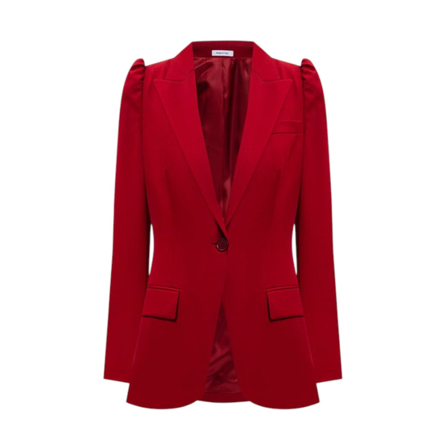 Alexander McQueen Red Wool Single-Breasted Blazer. Red wool single breasted blazer with balloon sleeves, button closure and welt pockets.