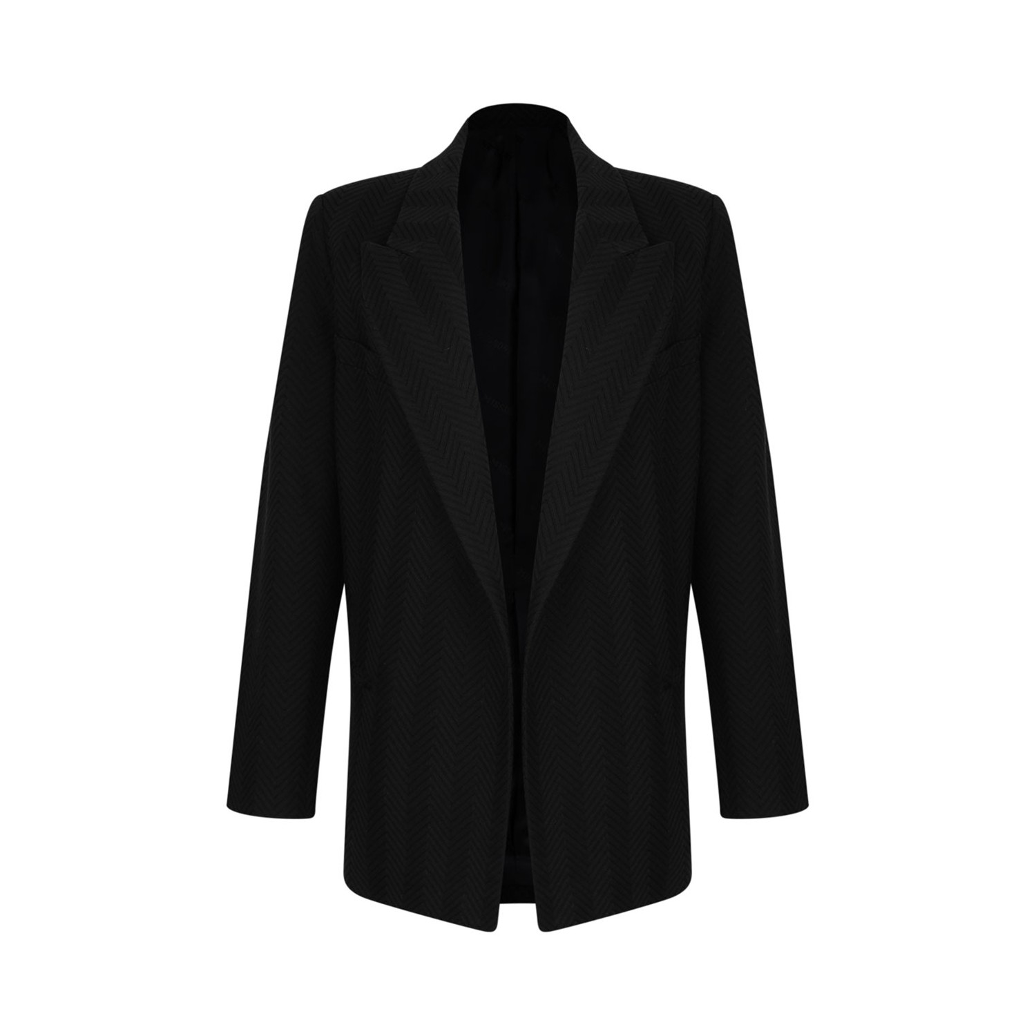 Blue Single-Breasted Blazer With Zigzag Pattern