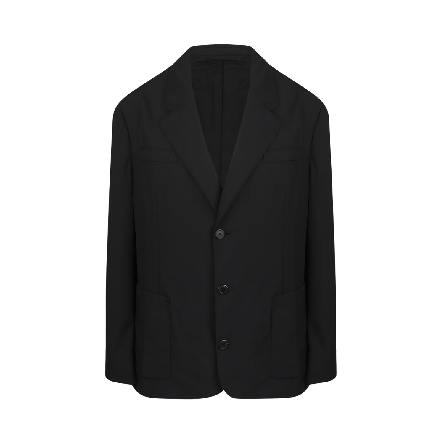 Prada Black Single Breasted Blazer. Black wool single breasted blazer with front button fastening, chest welt pocket, two side patch pockets.