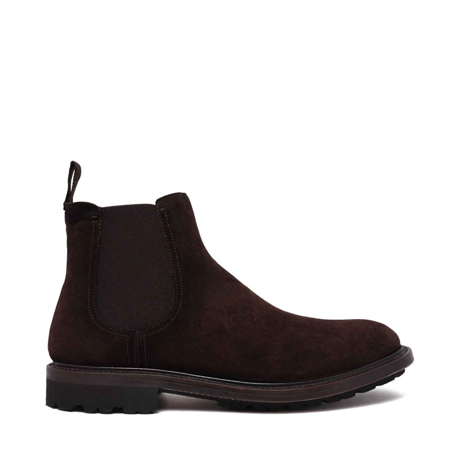 Fabi Black Suede Chelsea Boots. The refined suede boots reinterpret the timeless Chelsea style in a contemporary way thanks to the clean silhouette and elastic side panels. Classic rounded toe, pull tab at the back for easy wear, slip-on design with a lightweight rubber sole for everyday elegance.