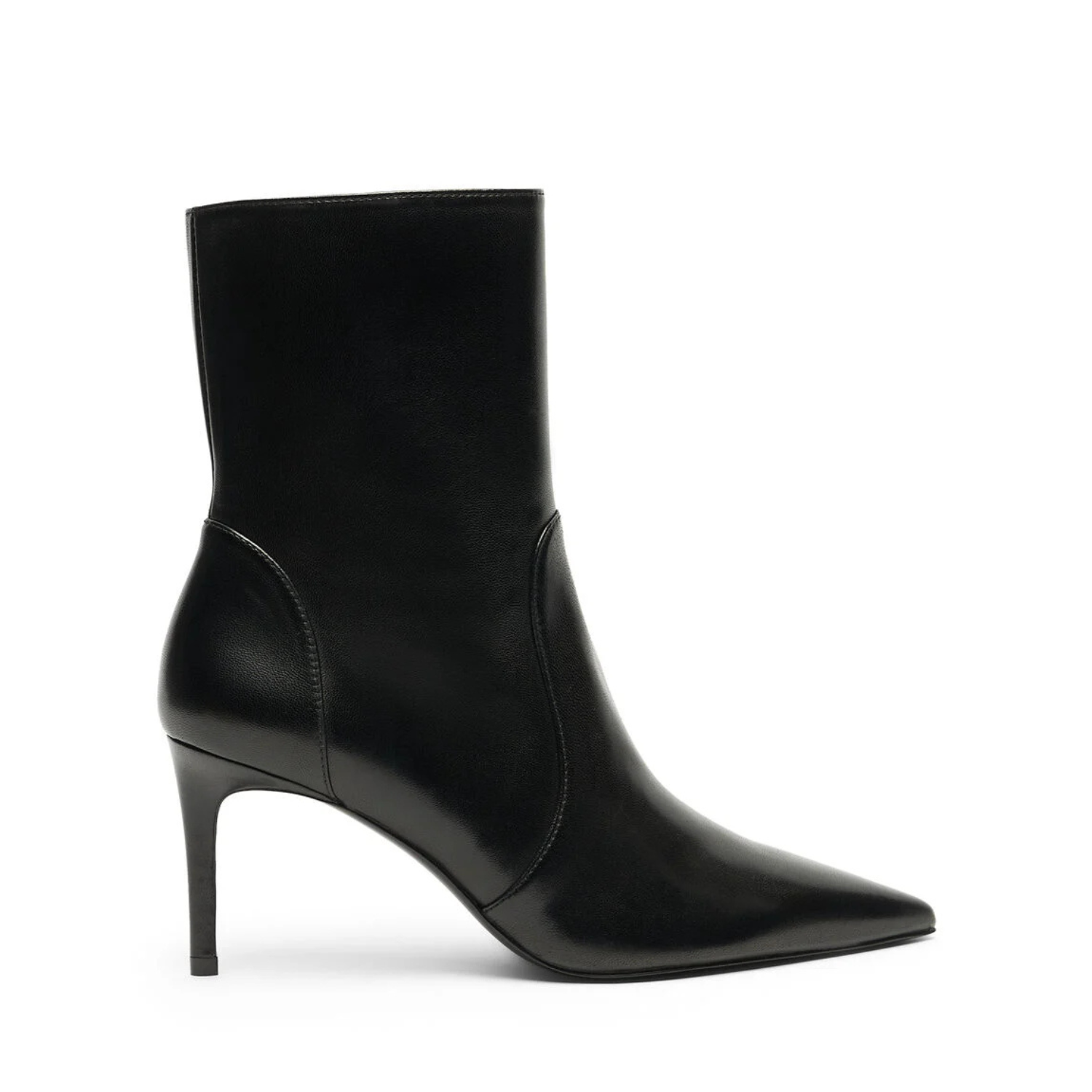 Stuart Weitzman Black Power Zip 75 Boots. Black pointed toe boot with ultra-modernised construction for enhanced support, a strategically placed 75mm stiletto heel for added stability, and a new cushioning foam insole for flexibility on any occasion.