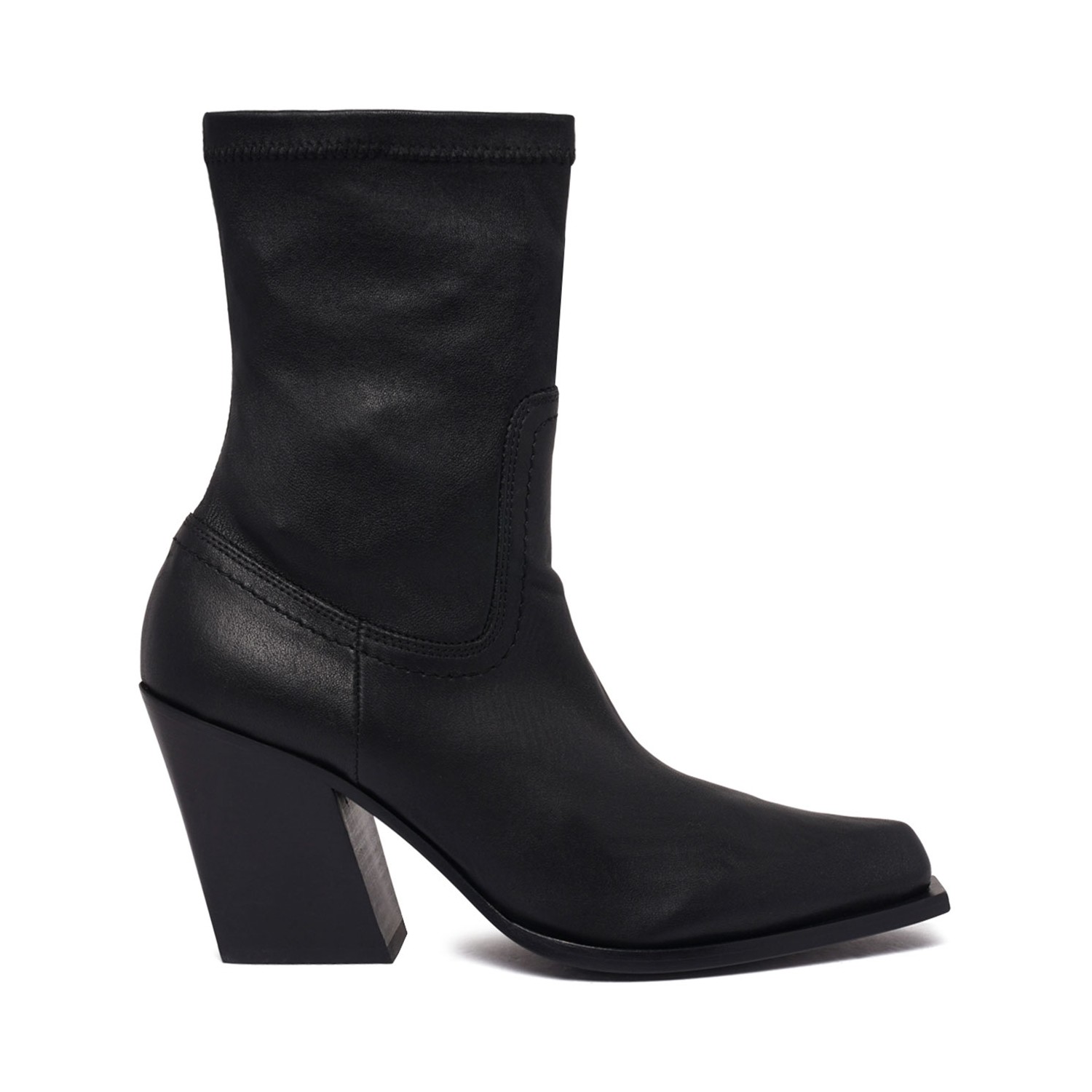 Black Stretch-Leather Pointed-Toe Boots