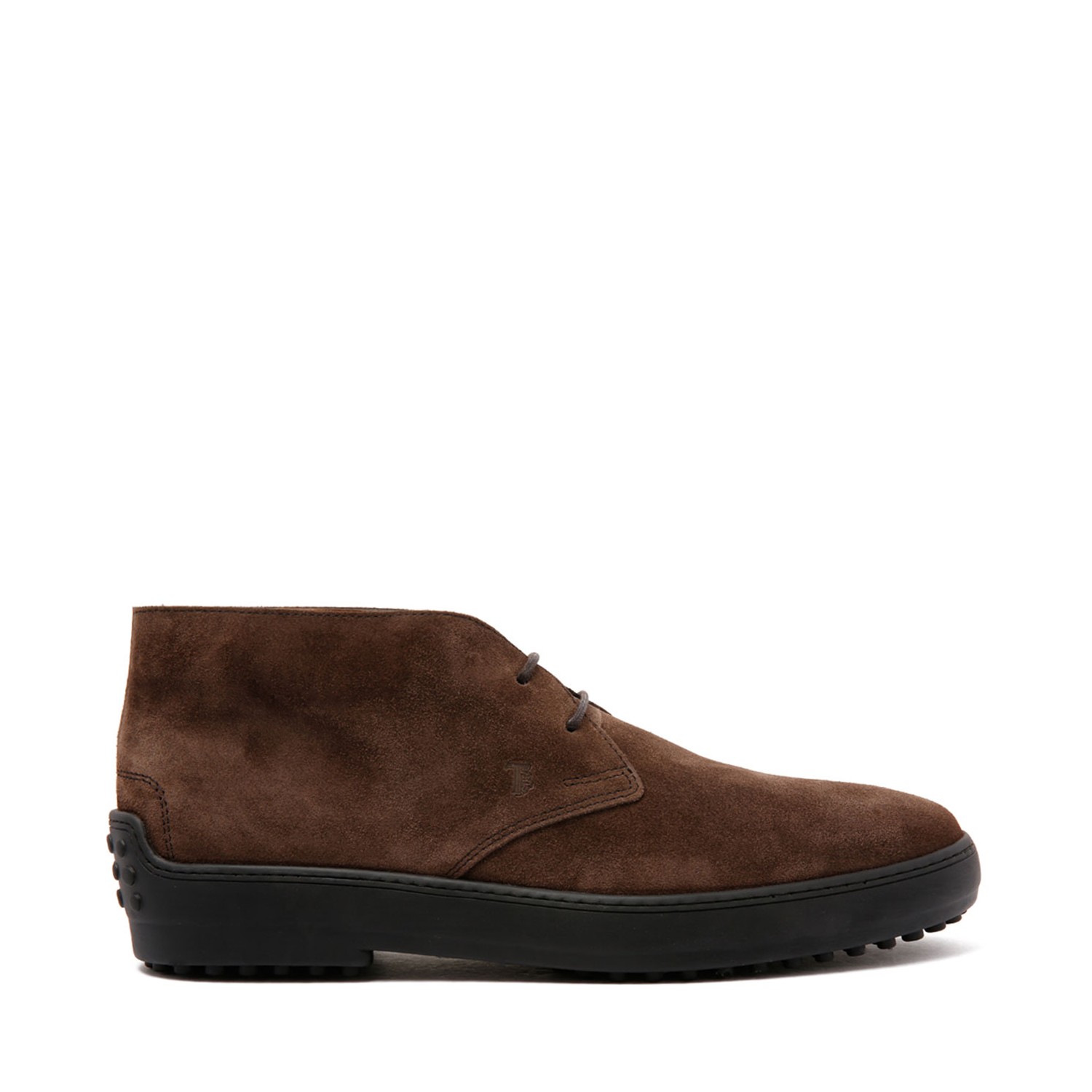 Tod's Brown Suede Boots. Brown suede boots with front lace-up fastening, flat rubber sole, debossed logo to the side and round toe.