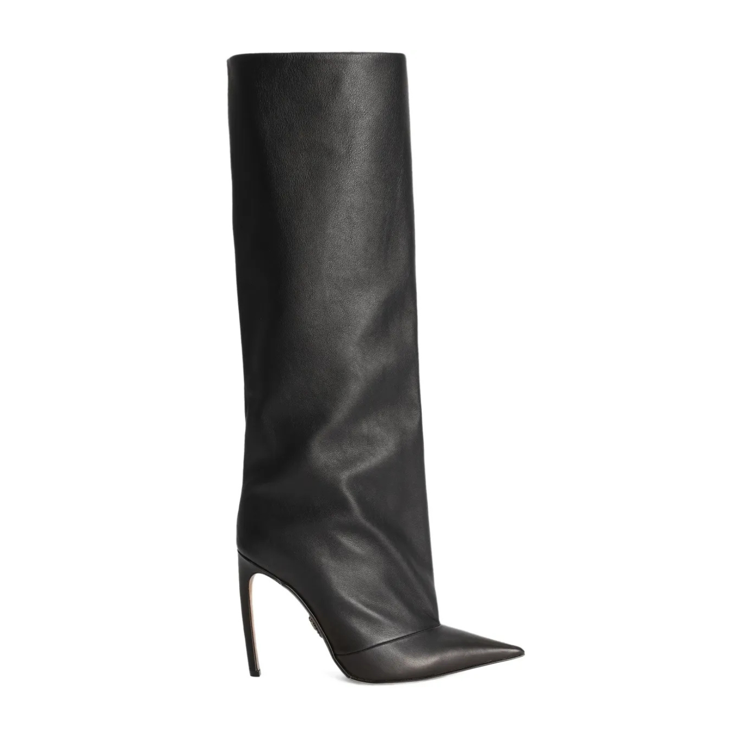 Dolce & Gabbana Black Devotion 105mm Knee High Boots. Black calf leather boots with stiletto heel, height above the knee, pointed toe.