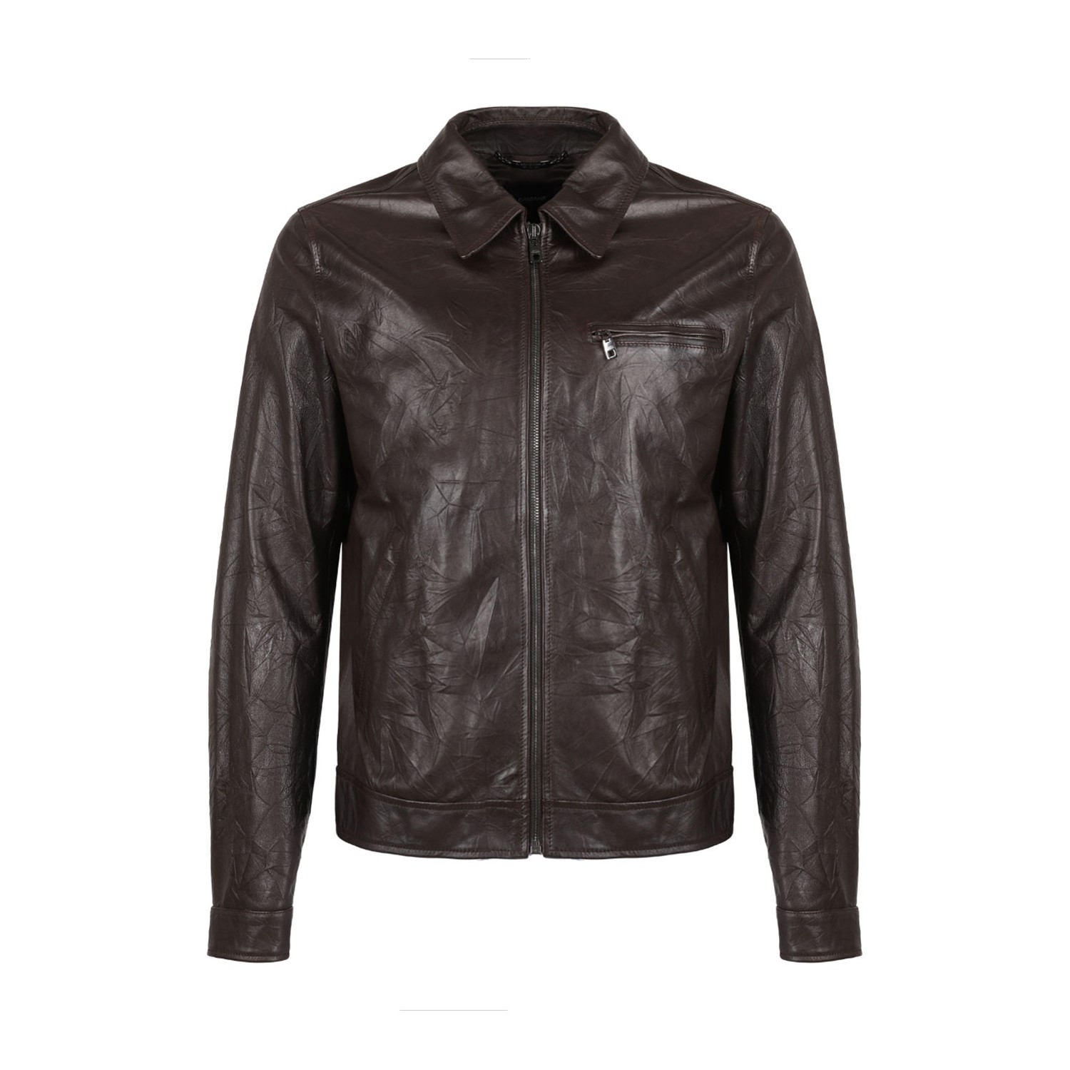 Dolce & Gabbana Brown Leather Jacket. Brown sheepskin jacket, silk lining, zip fastening. Classic collar, zip fastening chest pocket, long sleeves, straight hem.