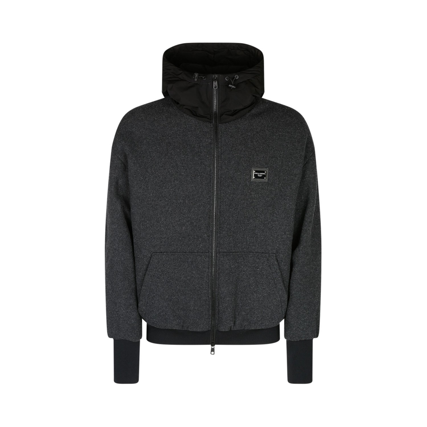 Dolce & Gabbana Black Wool Cashmere Blend Jacket. Black wool cashmere blend jacket, drawstring hood, high neck, front zip fastening, logo plaque, long sleeves, two front pouch pockets.