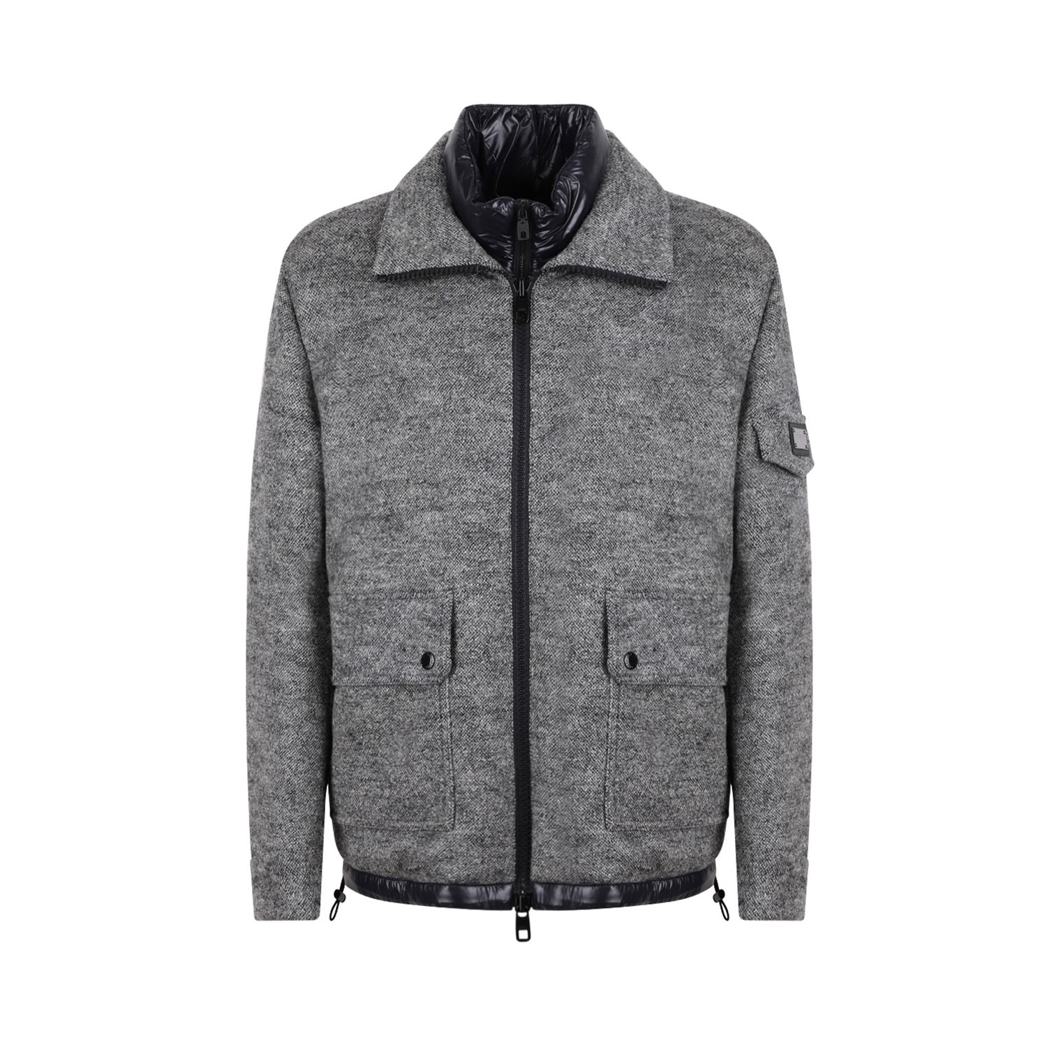 Dolce & Gabbana Logo-Plaque Wool Jacket. Gray wool blend jacket with stand-up collar, front zip fastening, logo plaque at the arm. Sleeve flap pocket, long sleeves, two front flap pockets and straight hem.