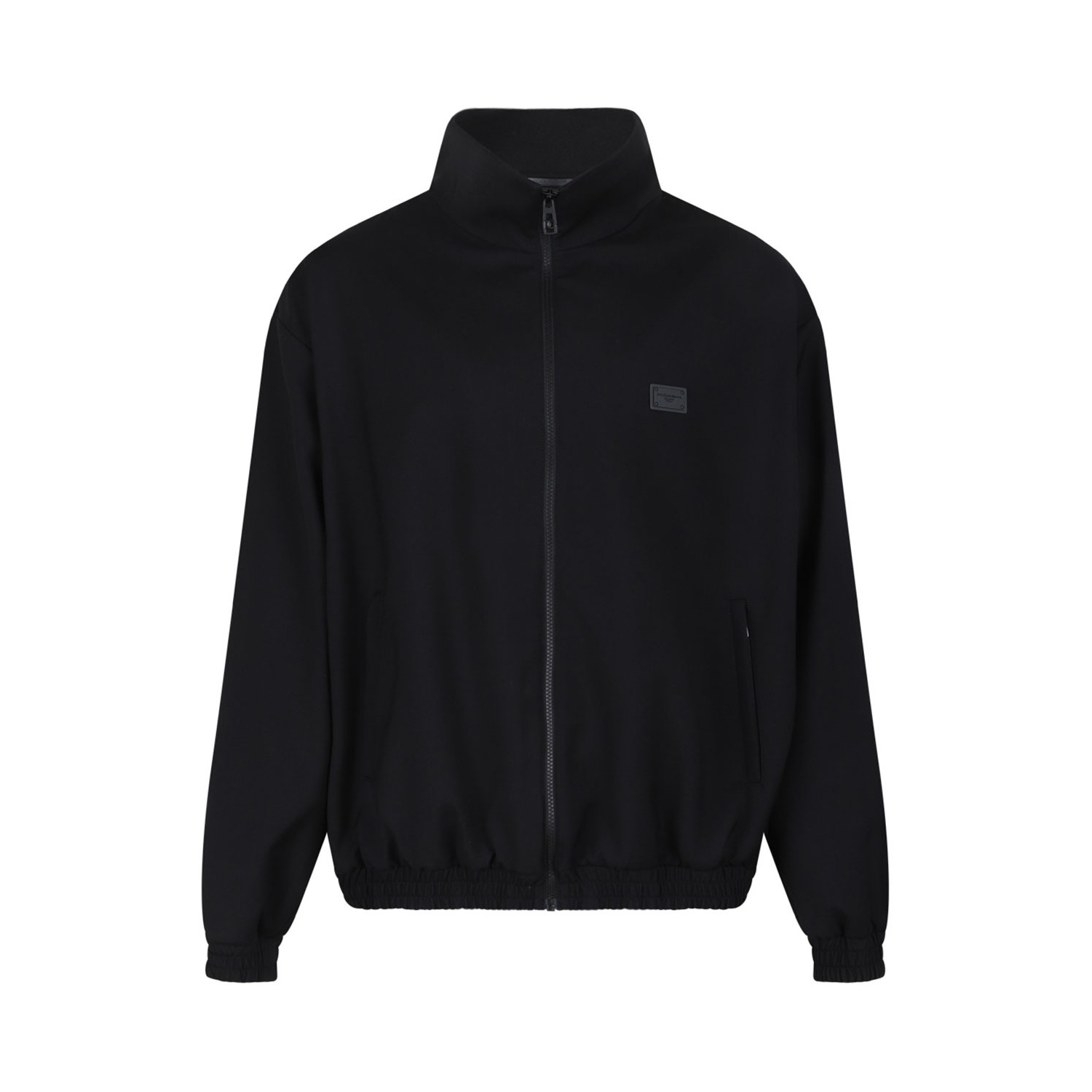 Dolce & Gabbana Black Wool Jacket. Black wool jacket, front zip fastening, two side slit pockets, long sleeves, logo patch at the chest.