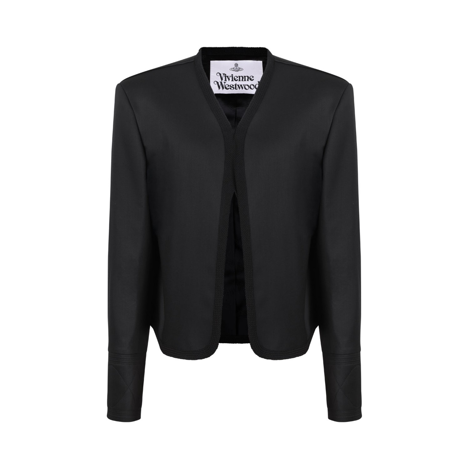Vivienne Westwood Black Cocoa Jacket. Black virgin wool jacket with long sleeves.