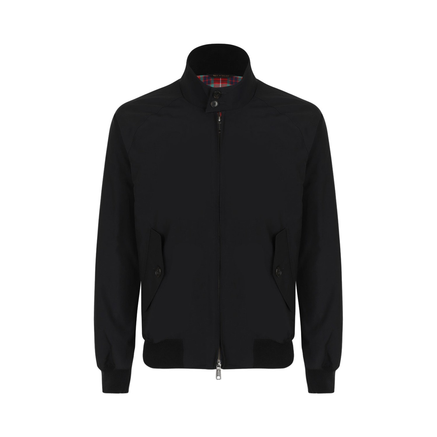 Baracuta Dark Navy G9 Original Bomber Jacket. Dark navy blue cotton blend bomber jacket with button-fastening, collar, front zip fastening. Long sleeves, elasticated cuffs, two side flap pockets, elasticated hem.