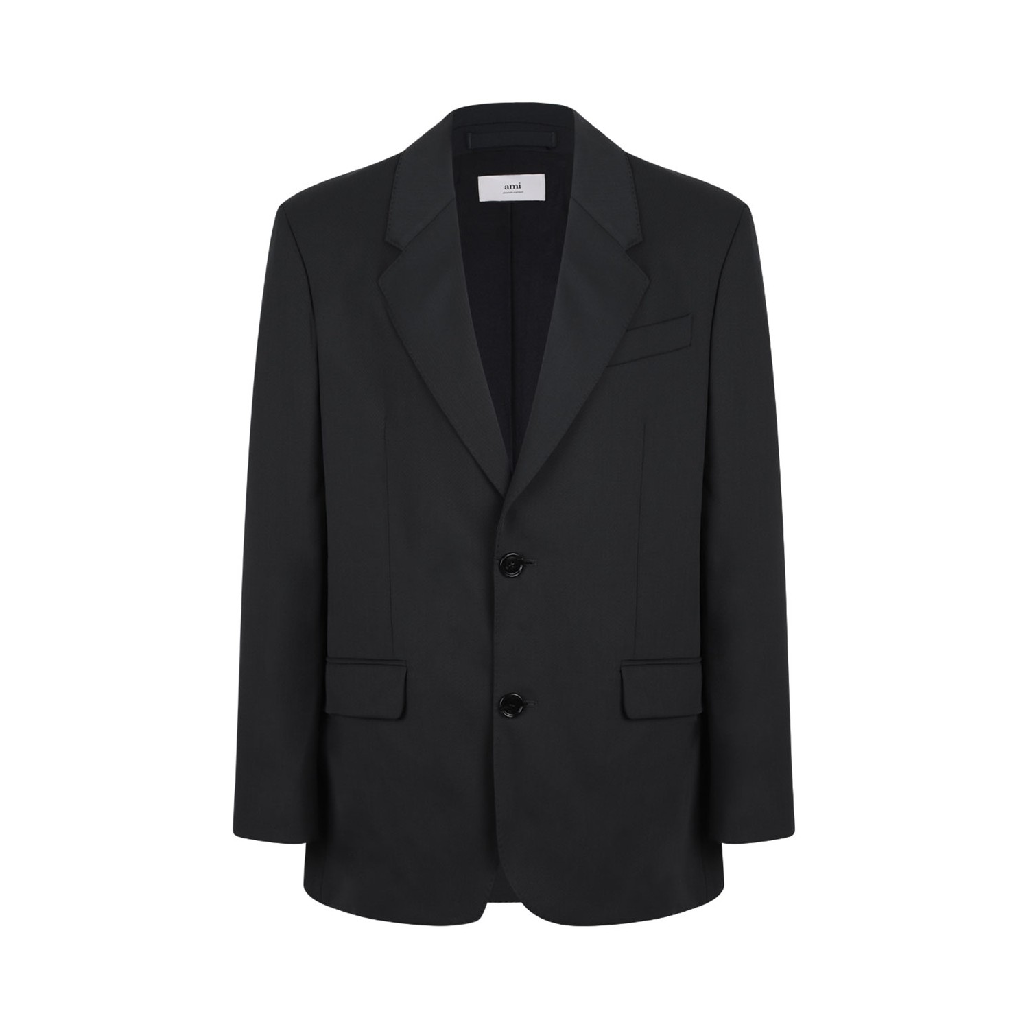 Ami Paris Black Single Breasted Wool Jacket. Black virgin wool jacket with notched lapels, front button fastening, flap pockets and English rear vents.