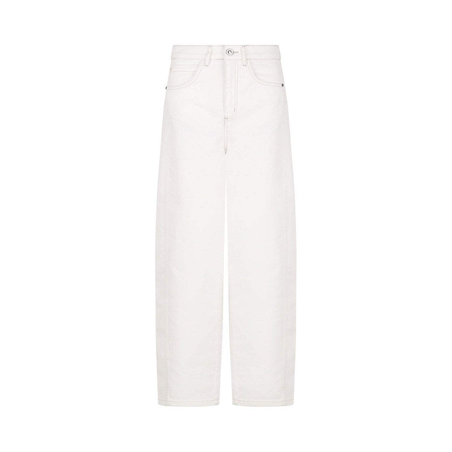 Caractere White Denim Jeans. White cotton denim jeans, classic five pockets, front button and zip fastening.