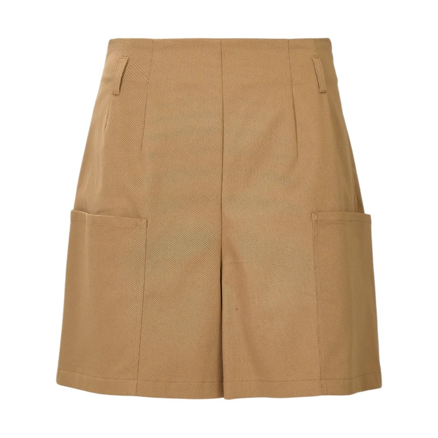 Caractere Camel Beige Shorts. Camel beige high-waisted shorts with bel loops, front pockets.