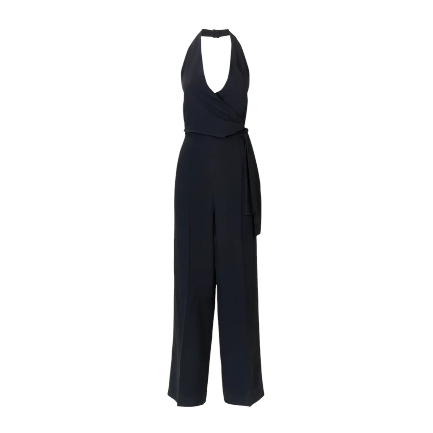 Caractere Black Sleeveless Jumpsuit. Black sleeveless jumpsuit with V neck, side bow.