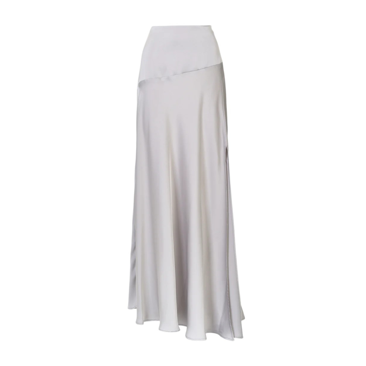 Caractere Grey Long Skirt. Grey long skirt with slit in faux satin.