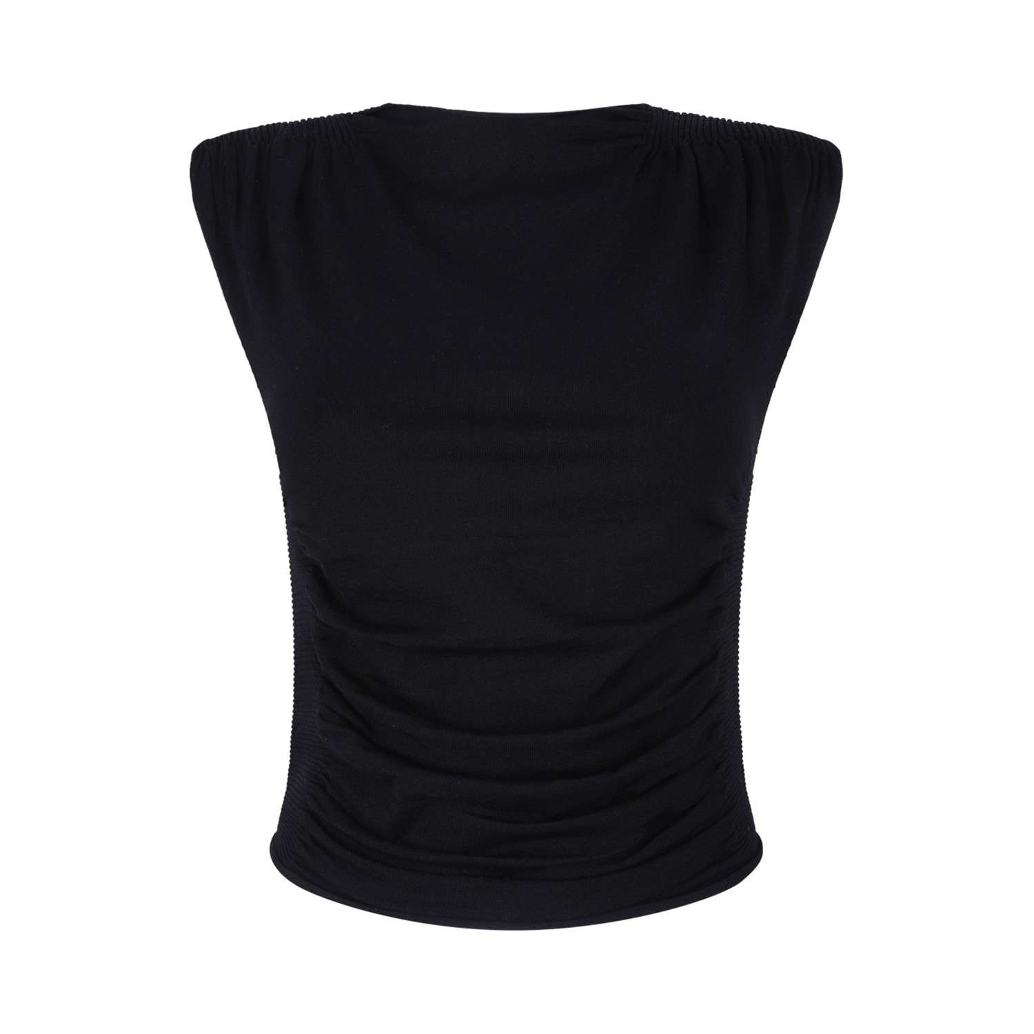 Alexander Wang Black Ruched Top. Black ruched top with crew neck, sleeveless and rolled trim.