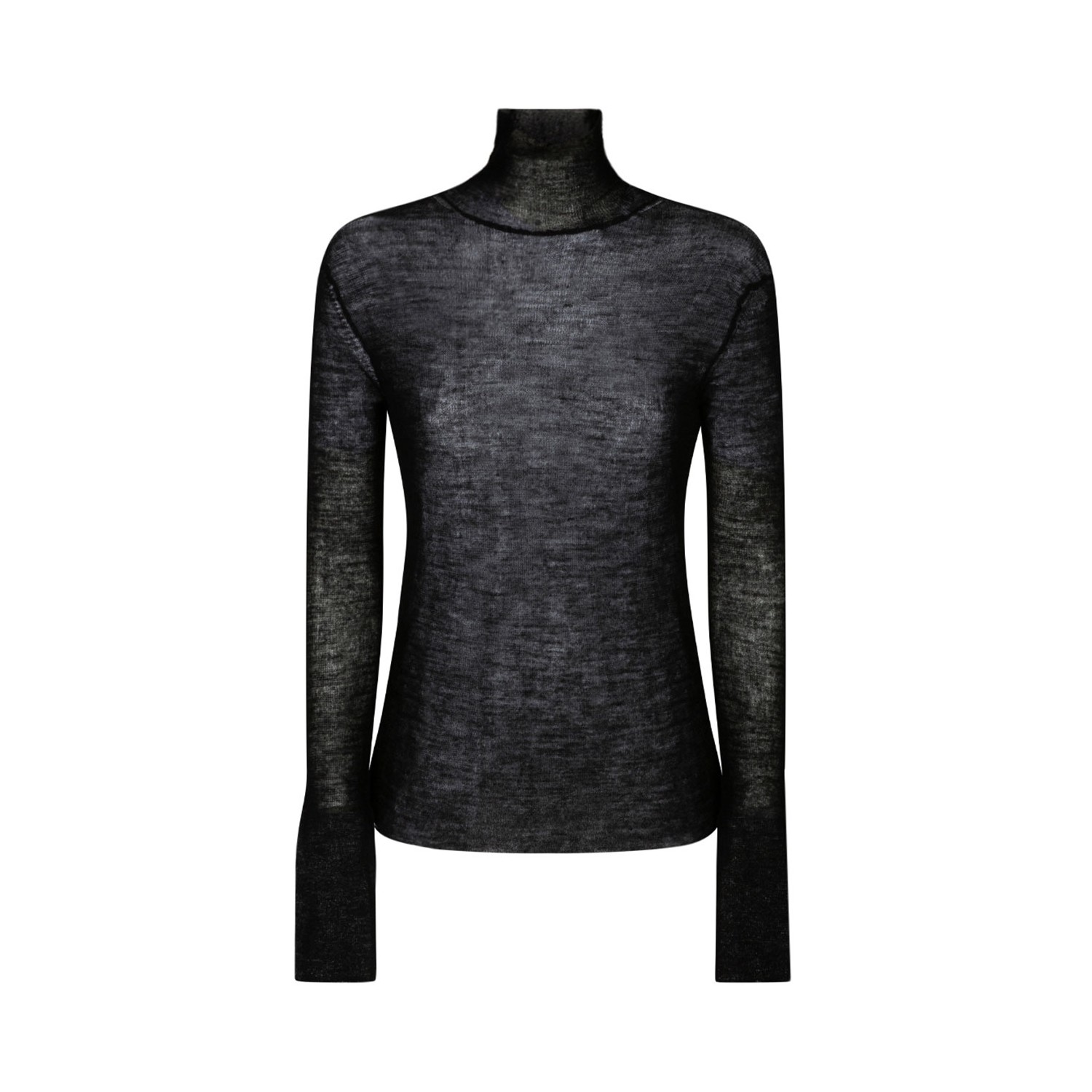 Jil Sander Black High Neck Sweater. Black wool sweater, high neck, long sleeves.