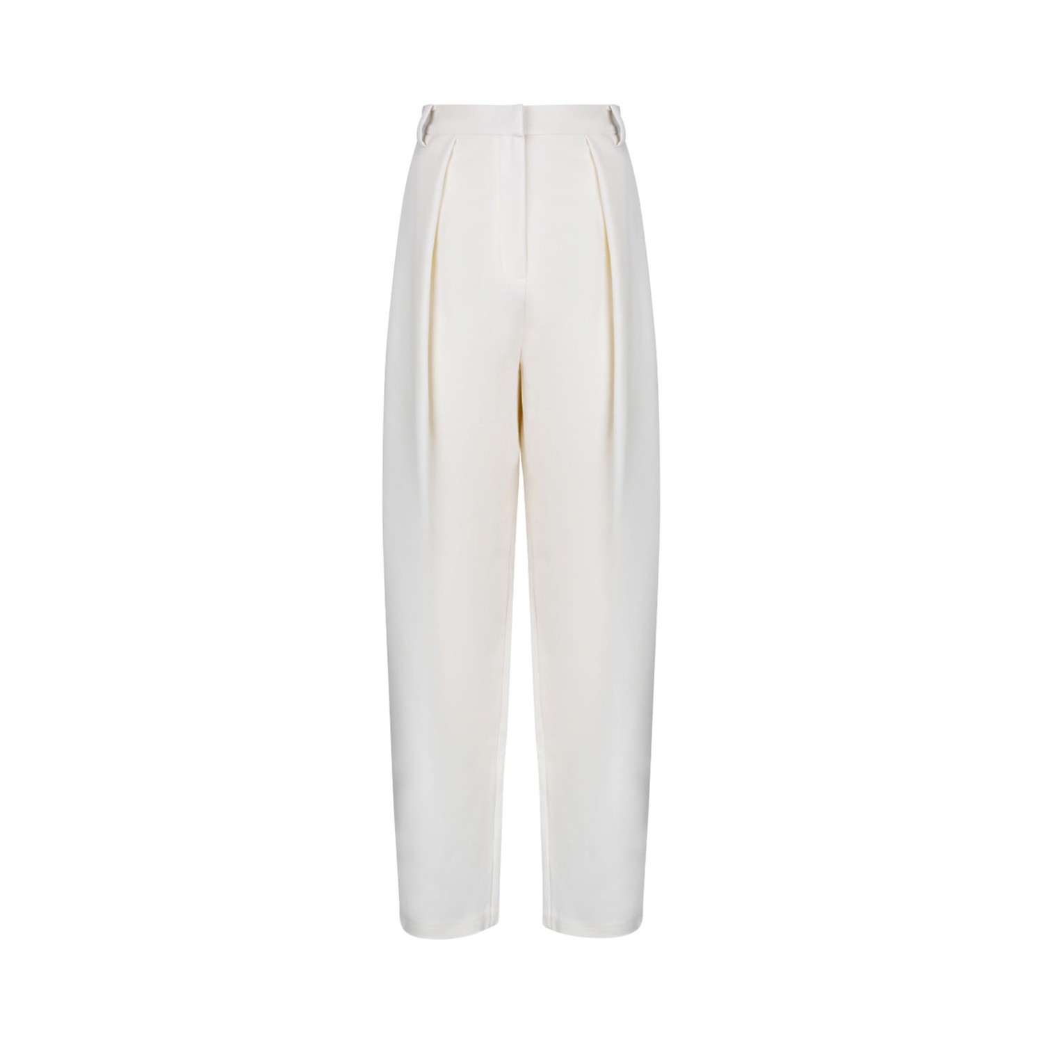Magda Butrym Tapered Wool Cream Trousers fits loose at the hips and narrows down the leg, extra slouchy cut.