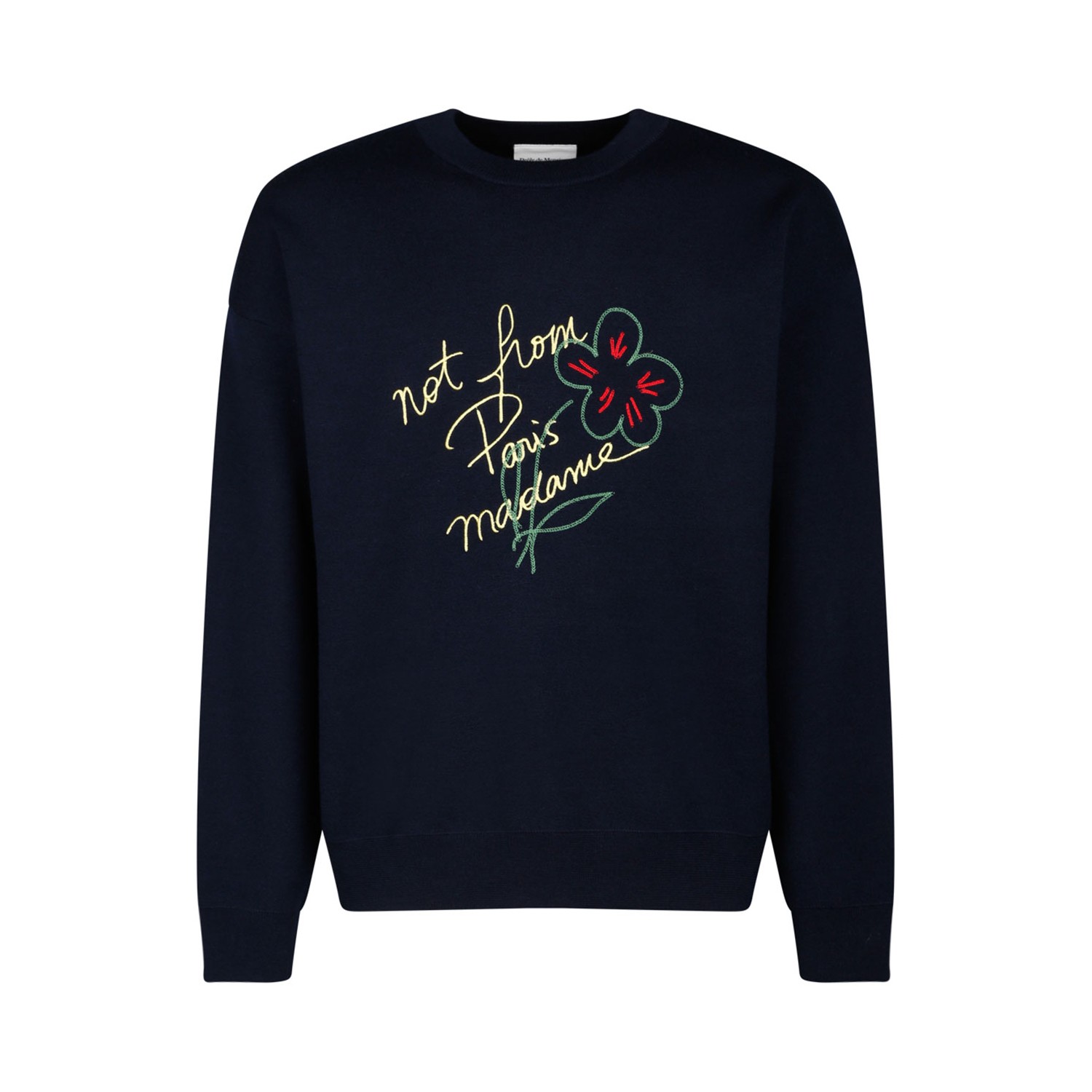 Drole De Monsieur Navy Le Sweatshirt Slogan Esquisse. Navy cotton sweatshirt, round collar, front Slogan print, ribbed hem and cuffs, French terry fabric.