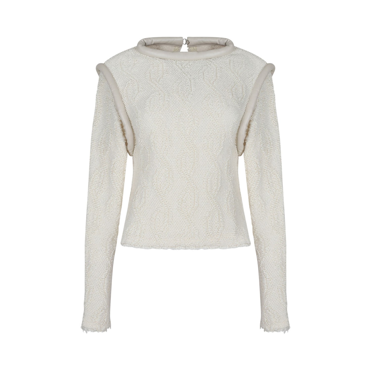 Isabel Marant Ecru Chuncky Sweater. Ecru knit construction sweater, textured finish, dropped shoulder. Crew neck, single back button closure, long sleeves, straight hem.
