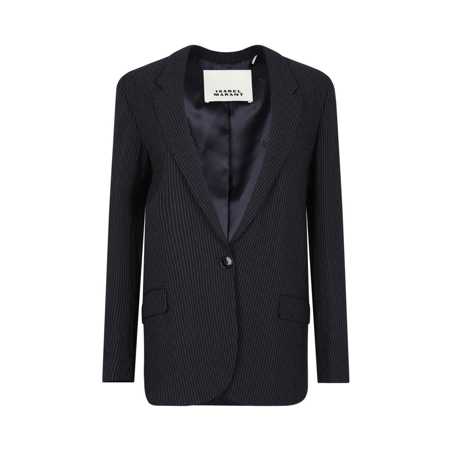 Isabel Marant Omelia Tailored Jacket. Midnight ecru tailored jacket in striped crepe, lapel collar, structured shoulders with epaulettes. Long sleeves, straight cuffs with buttons, chest pocket, welt pockets with flap. Button fastening, satin lining with Isabel Marant logos, staright model.