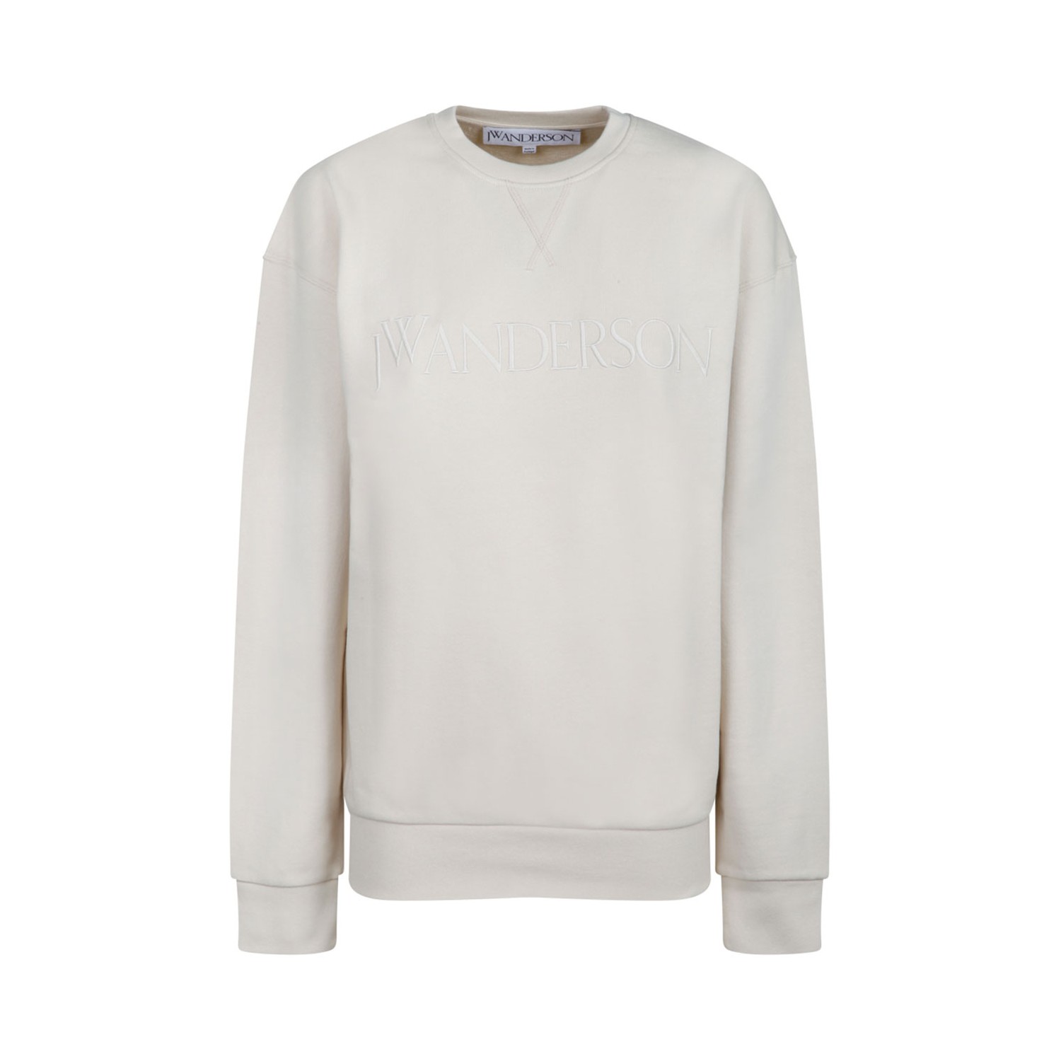 JW Anderson Light Beige Logo Embroidered Sweatshirt. Light beige cotton sweatshirt, jersey texture, crew neck, long sleeves. Elasticated cuffs, embroidered logo at the chest, internal logo tag, elasticated straight hem.