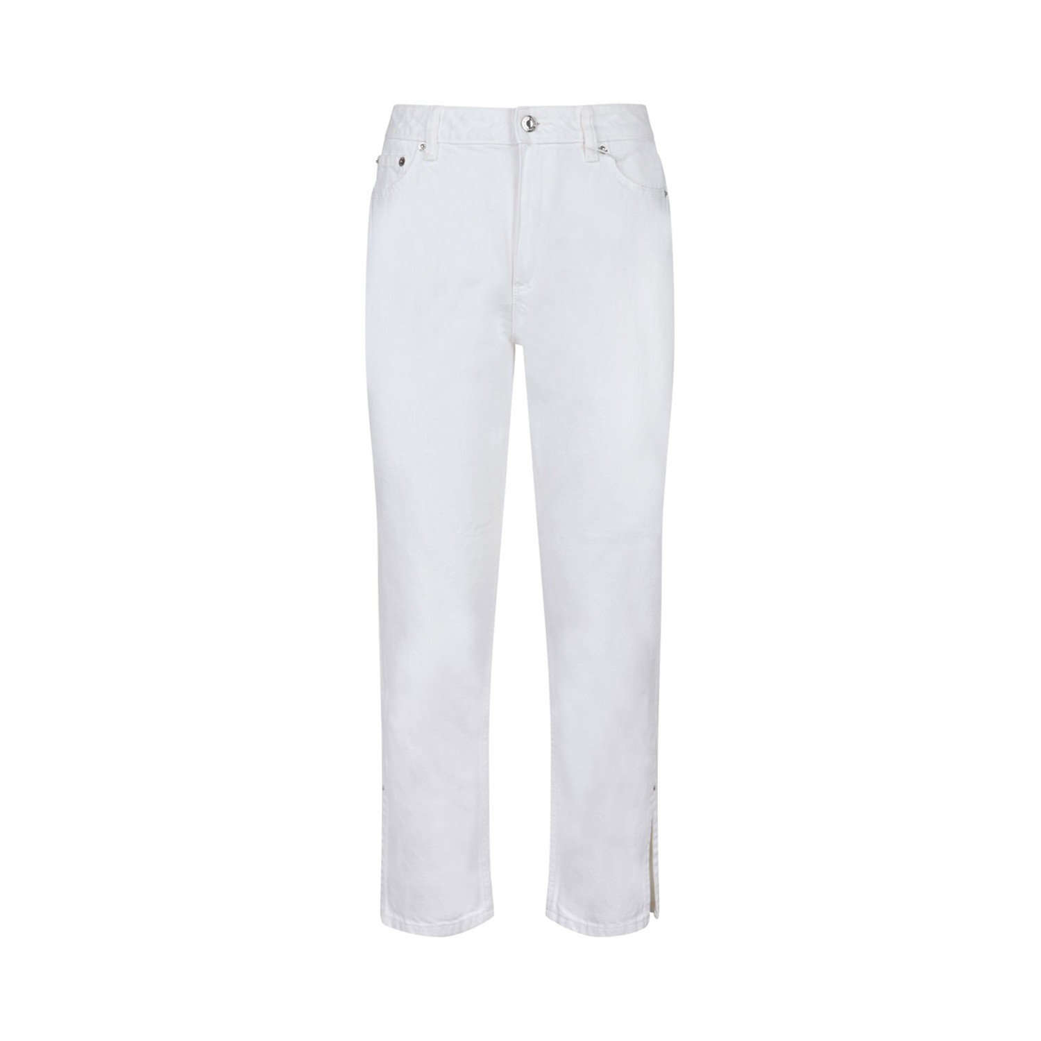 Michael Kors White Low Rise Jeans. White cotton low rise jeans, front button and zip fastening, classic five pockets, metal brand hardware to the rear, straight leg.